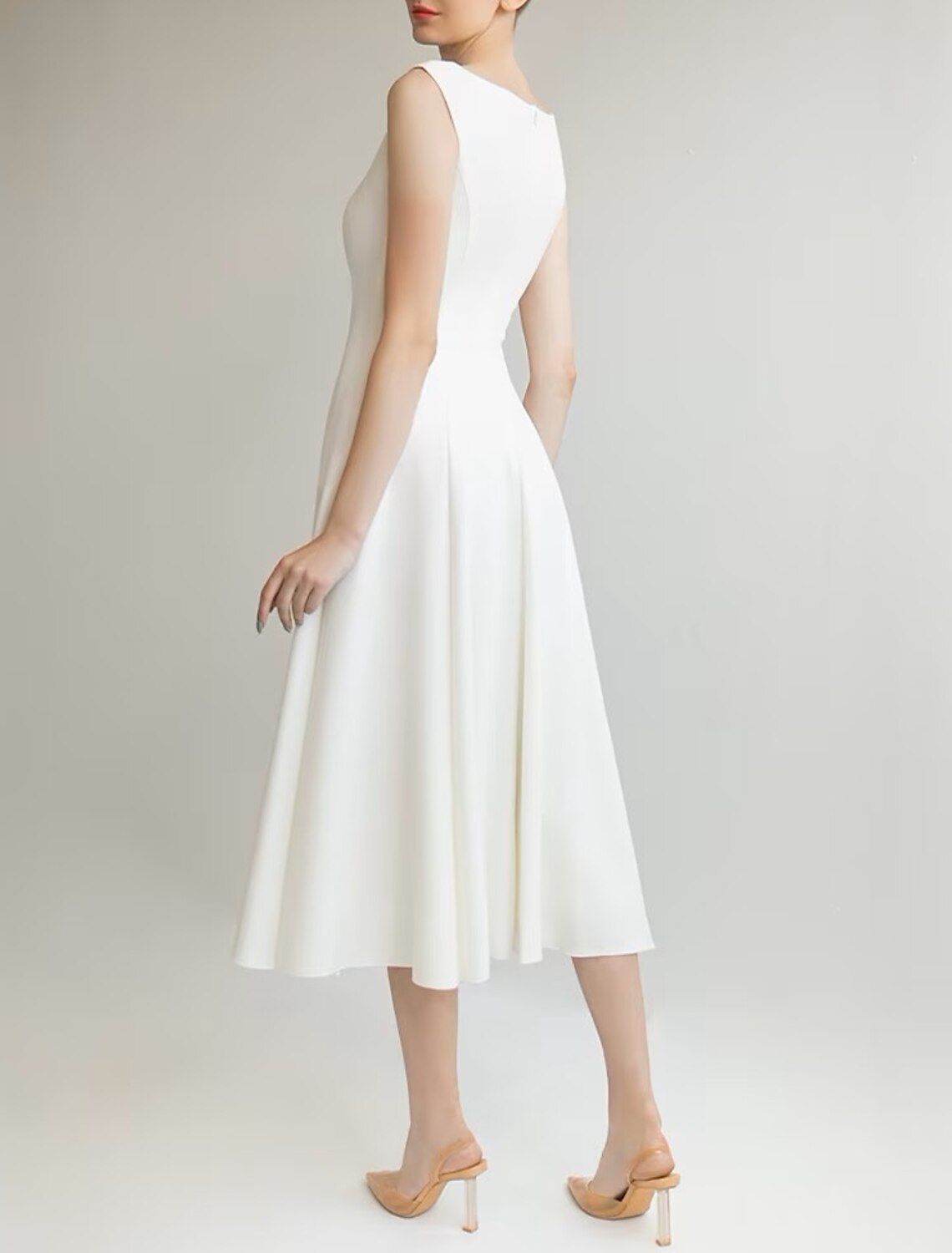 Bridal Shower Little White Dresses Wedding Dresses A-Line Scoop Neck Sleeveless Tea Length Satin Bridal Gowns With Solid Color