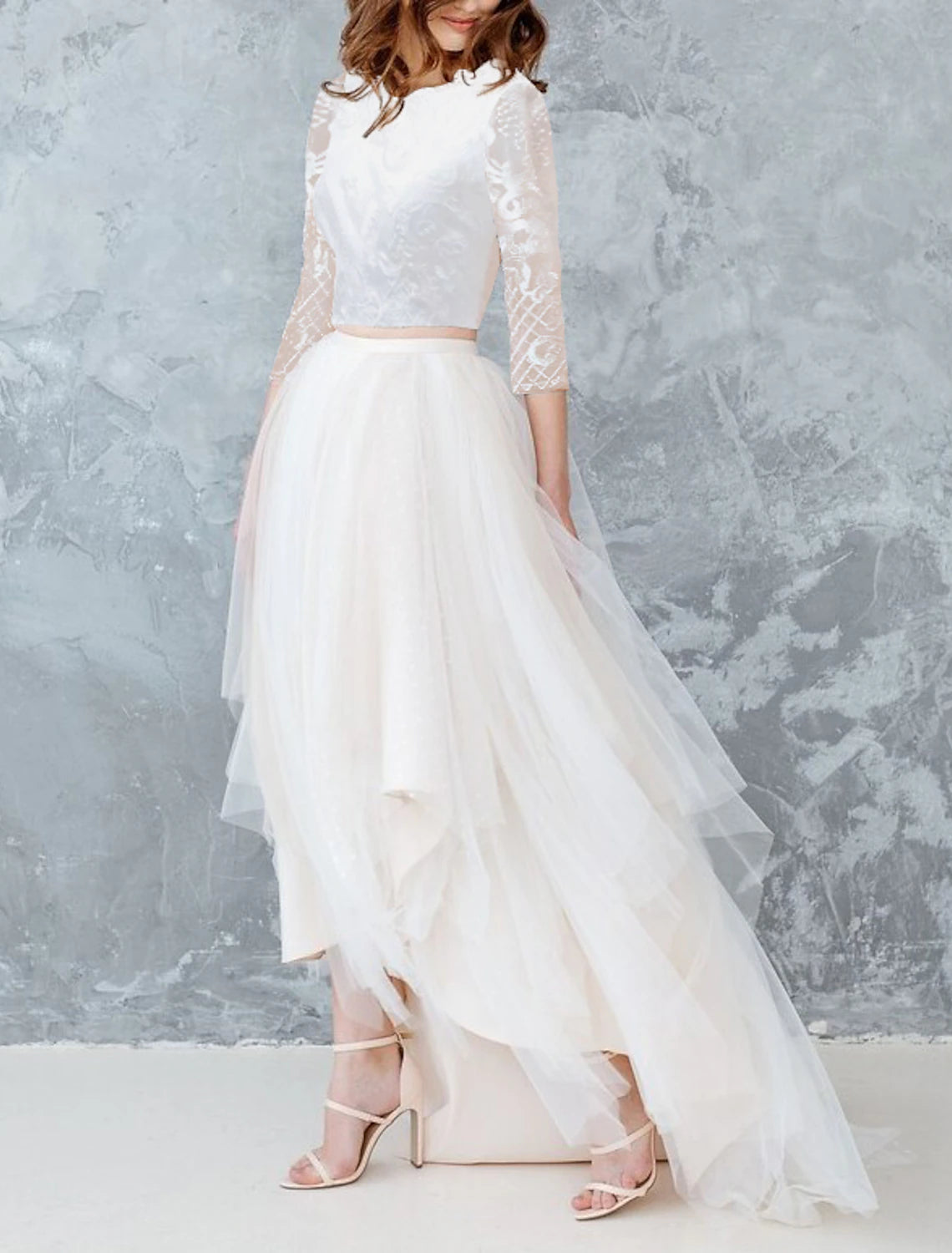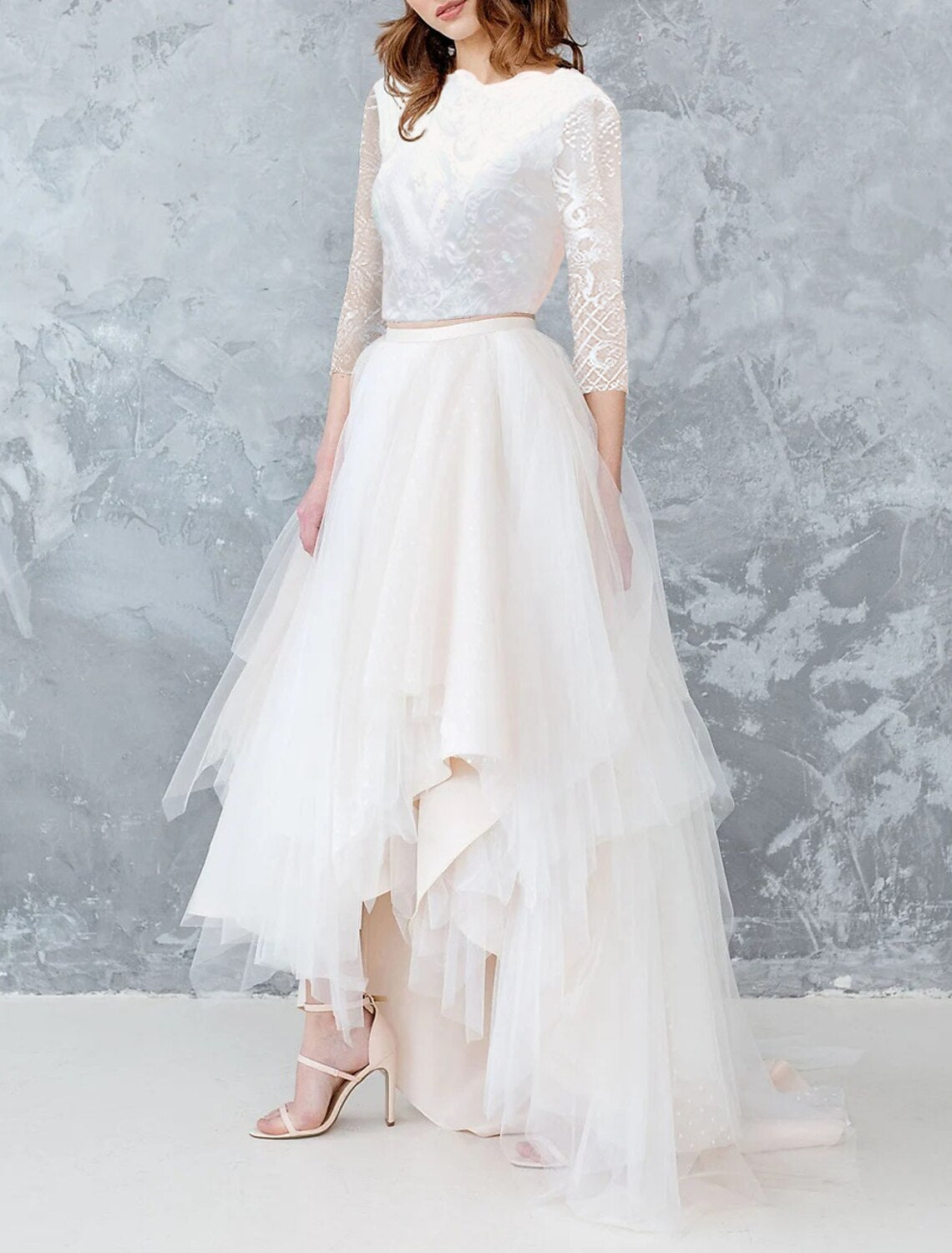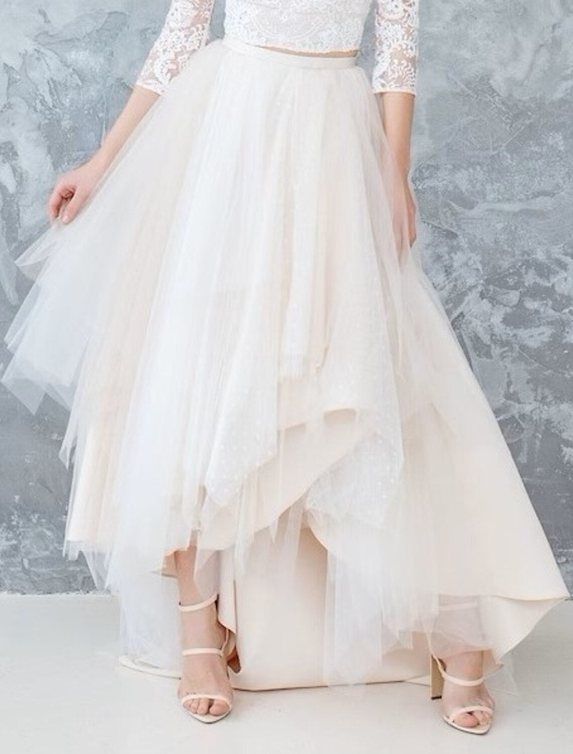 Bridal Shower Little White Dresses Wedding Dresses A-Line Separates Separates Asymmetrical Satin Bridal Skirts Bridal Gowns With Solid Color