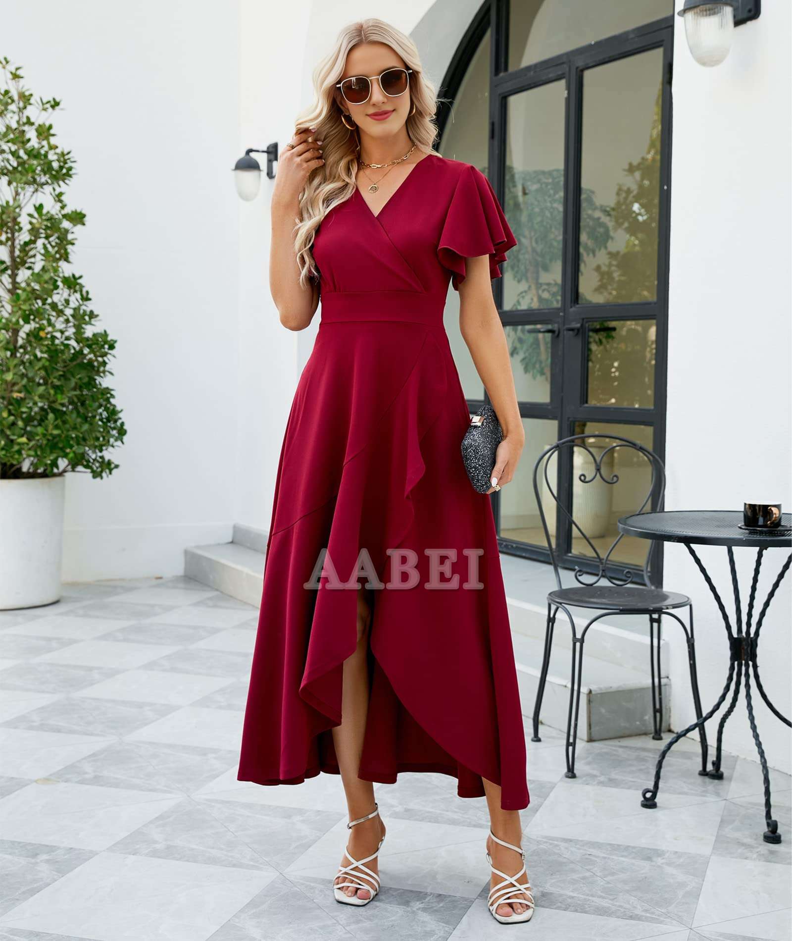 Bridesmaid Dresses Long Formal Dresses Evening Party Cocktail Dress Split Elegant V Neck Wrap Ruffle Wedding Guest Dresses