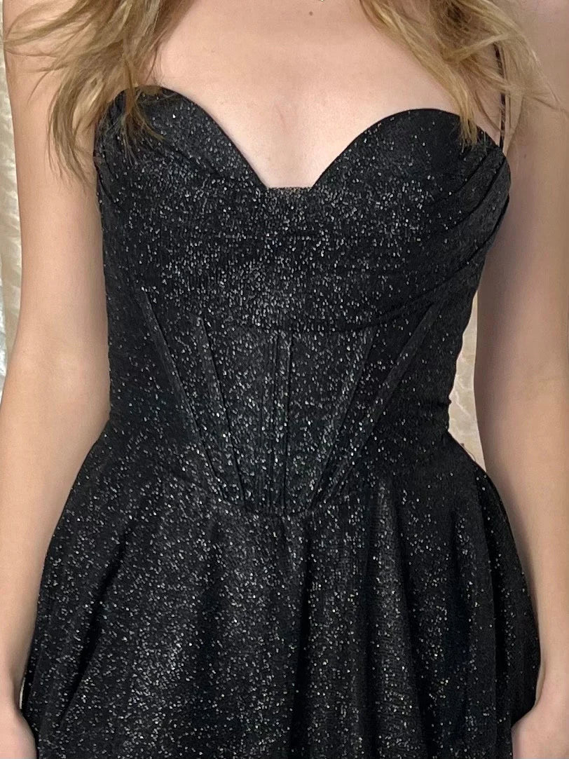 Evening Dress Fitted Corset Delicate Spaghetti Straps Back Lace Up Side Fork Black Formal Dress
