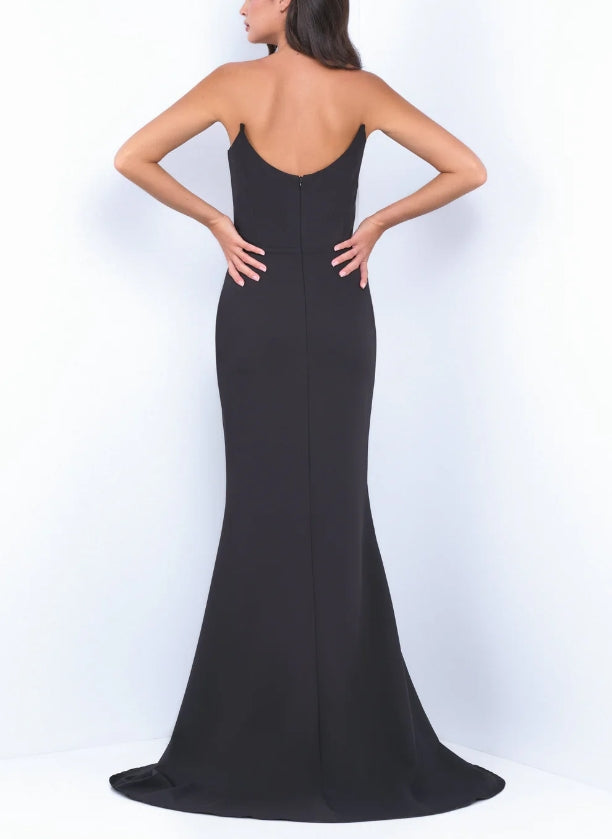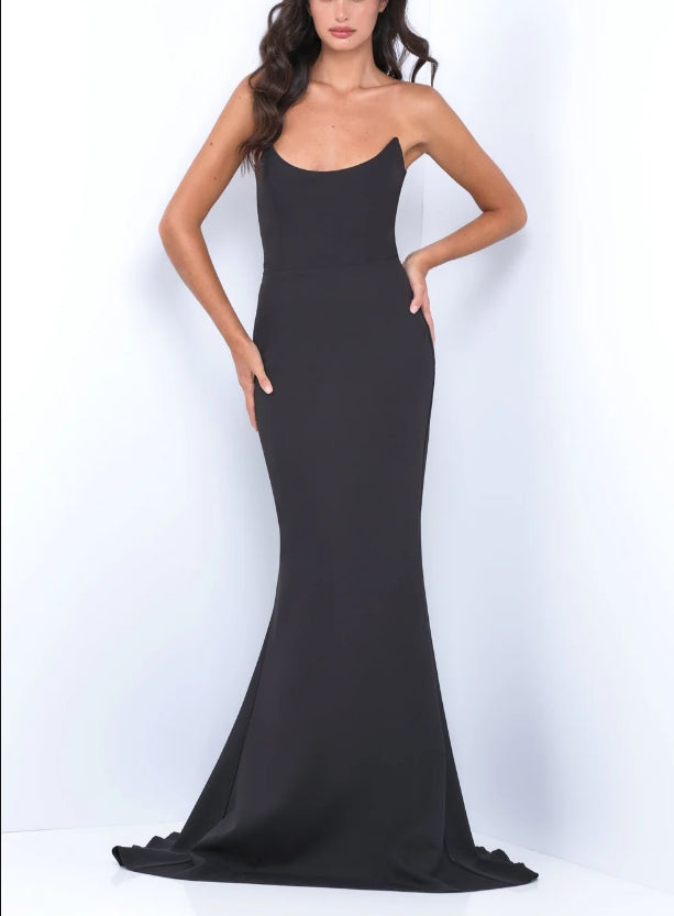 Evening Dress Front Back Scoop Neckline Sleek Fitted Silhouette Floor-Length Black Formal Dress