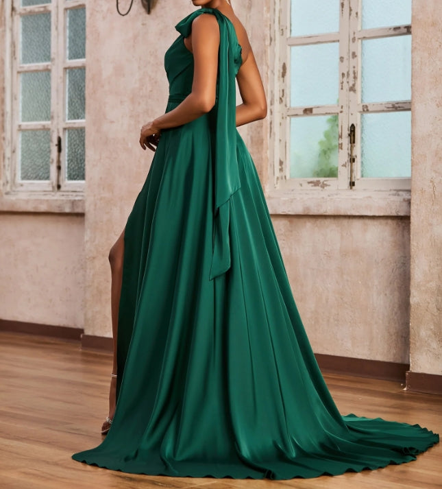 Evening Dress One Shoulder Ruched A-Line Long Ribbons Dress