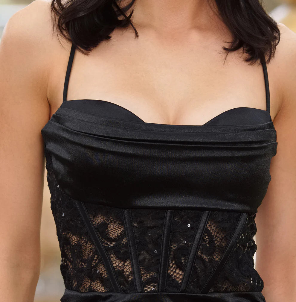 Evening Dress Sweetheart Neckline Ruching Sequin Lace Corset Mini Dress Black Formal Dress