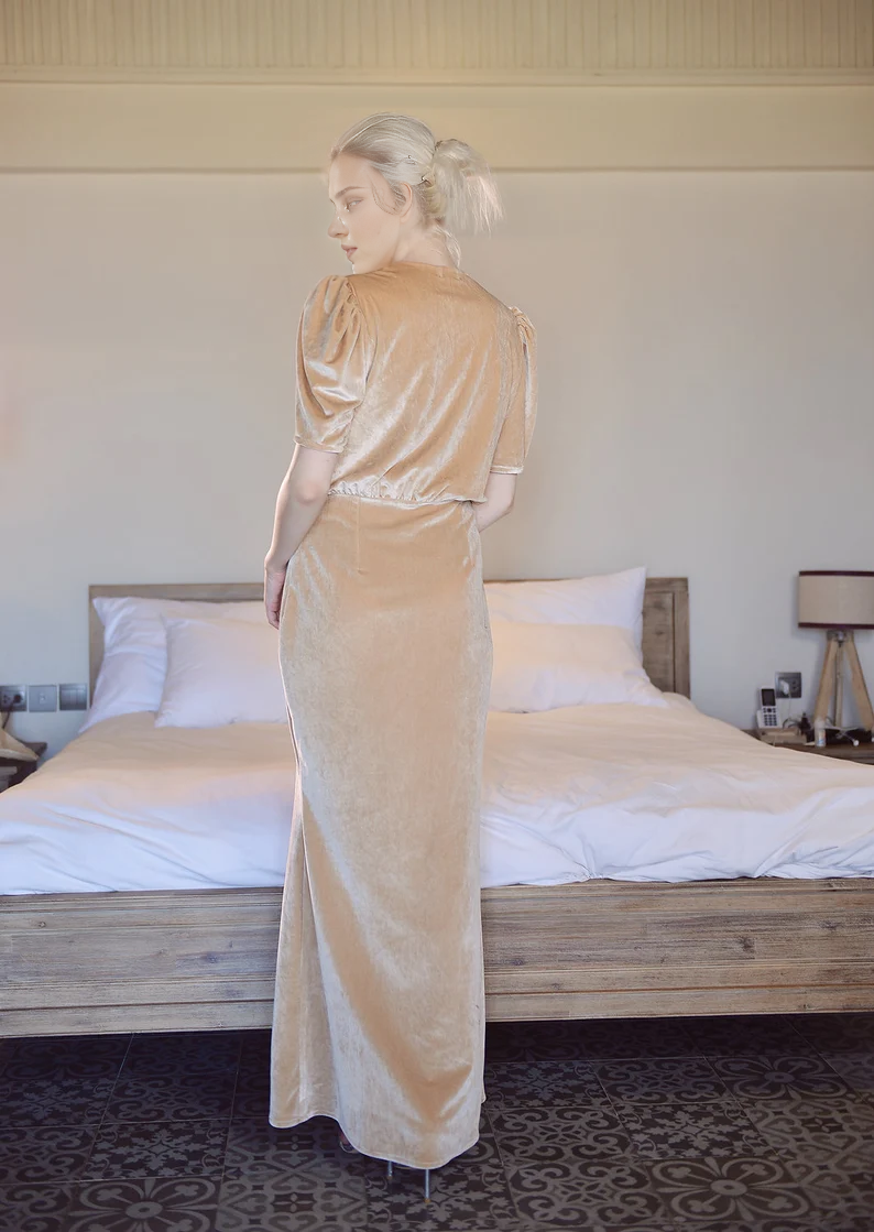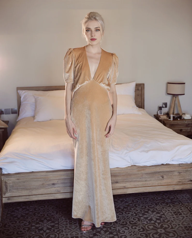 This dress is Made-To-Order. Whether you choose a standard size or custom measurements, our tailors craft each dress to order.