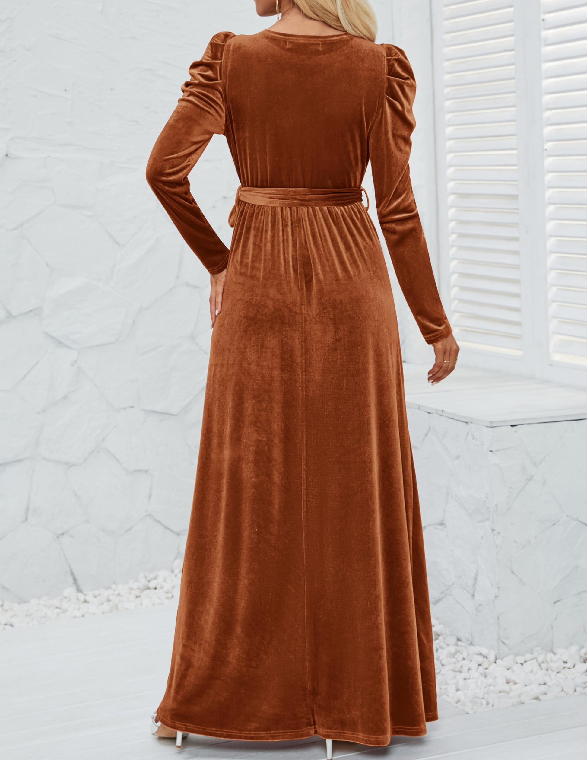 Evening Dress Women's Velvet Maxi Dress Long Puff Sleeve Crew Neck Formal Wear Dresses Wedding Guest Dress