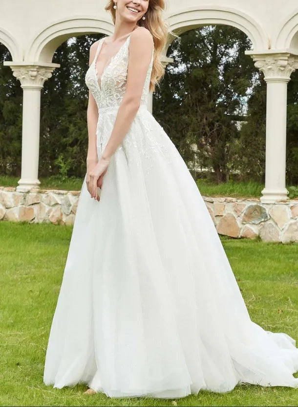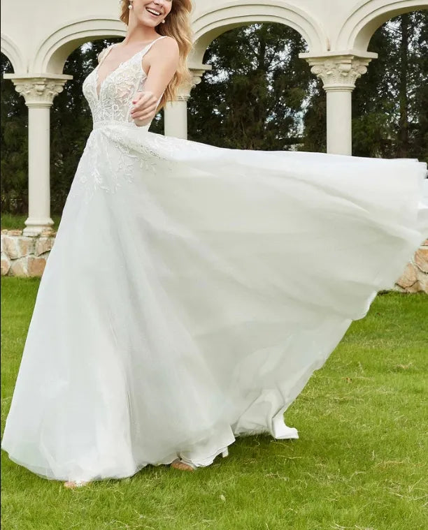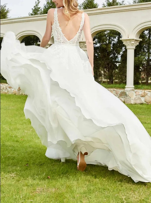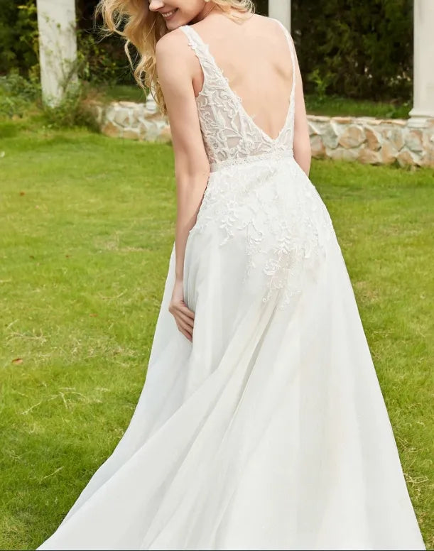 Fall November December New Pattern Formal Deep V Neck Ruched Lace Applique Tulle Backless Dress