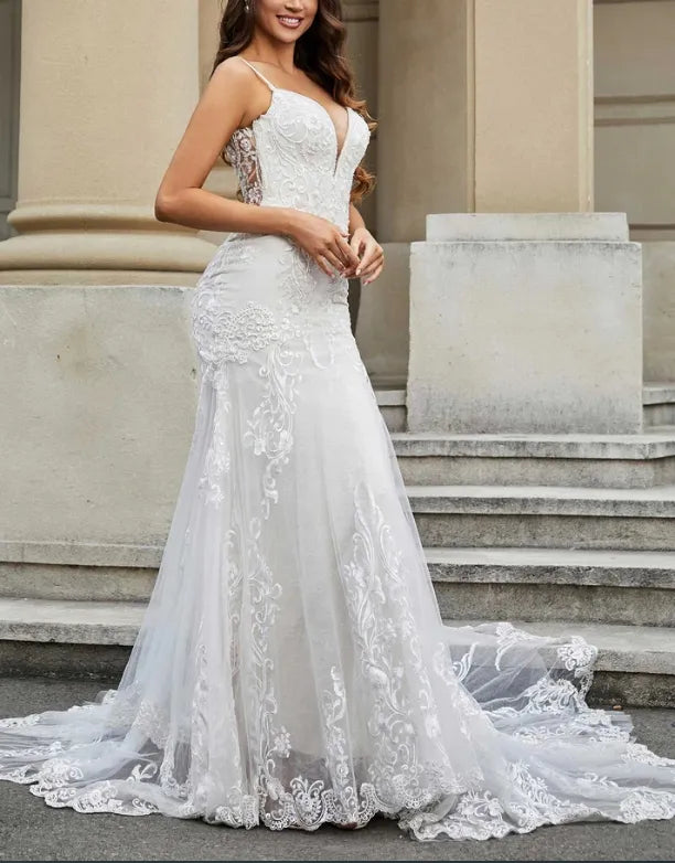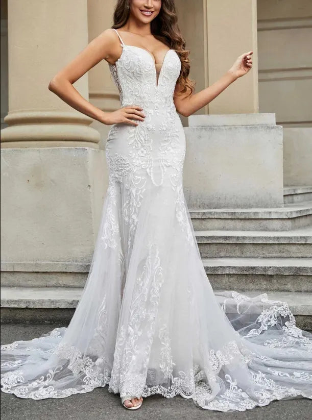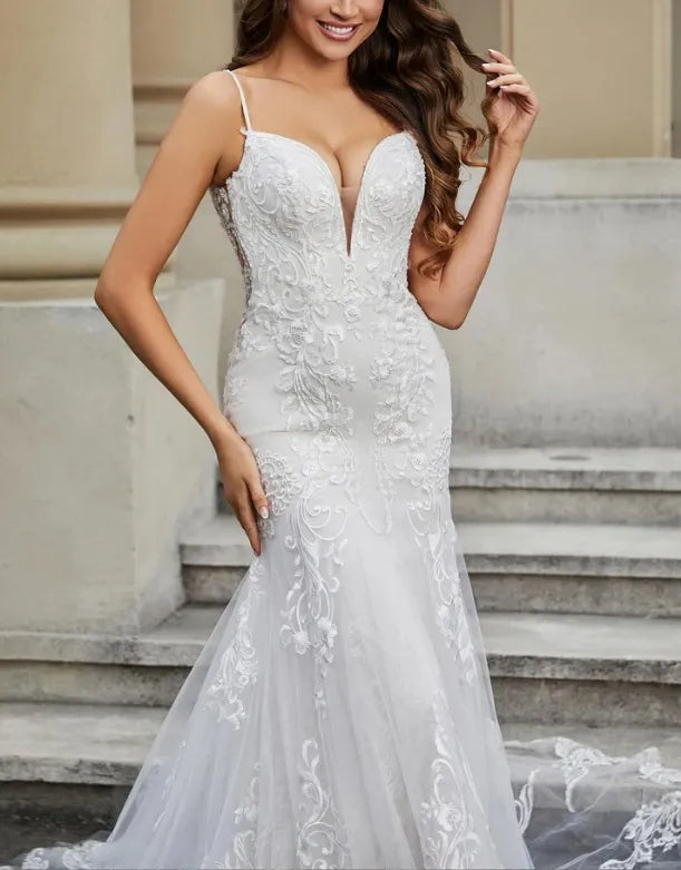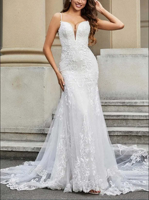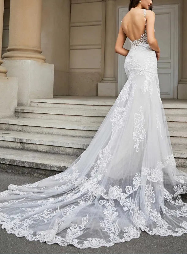 Fall November December New Pattern Mermaid Cultivate oneself V-Neck Spaghetti Strap Chapel Train Plunging Backless Elegant Dress
