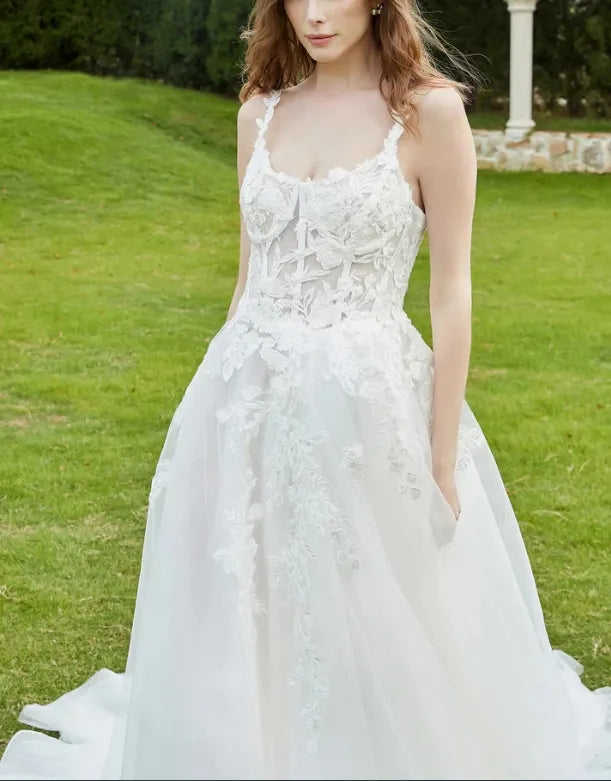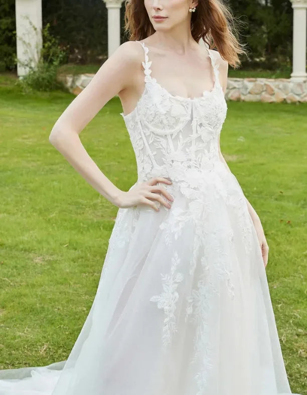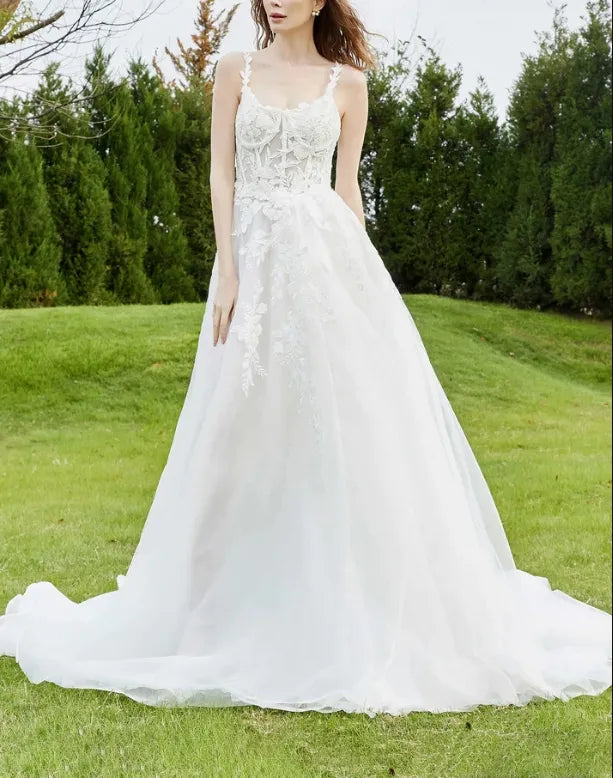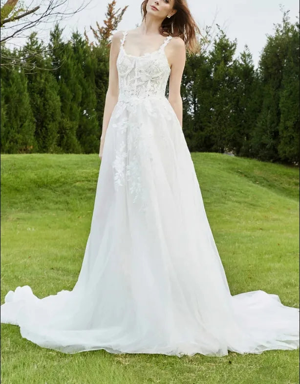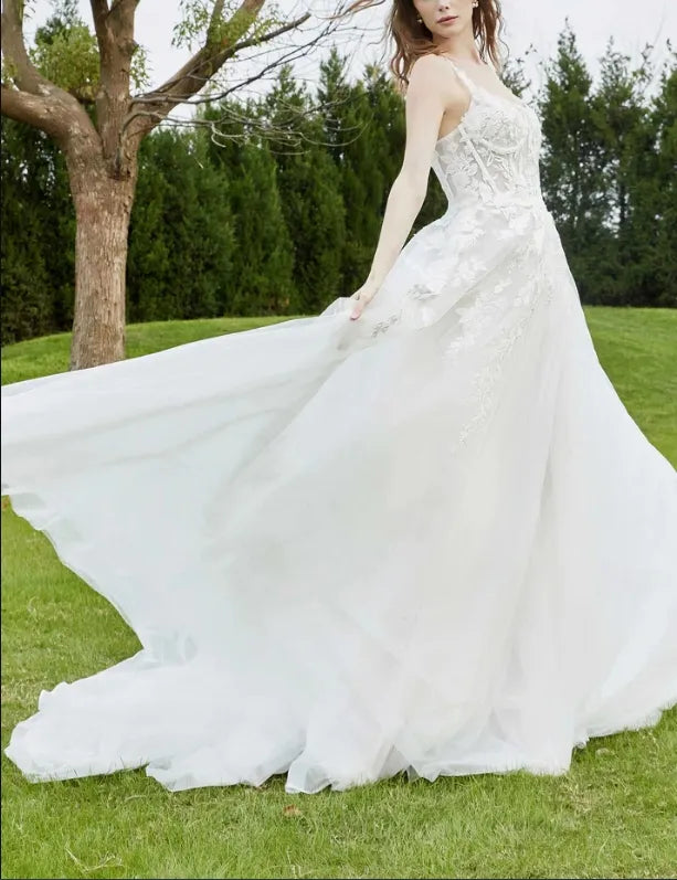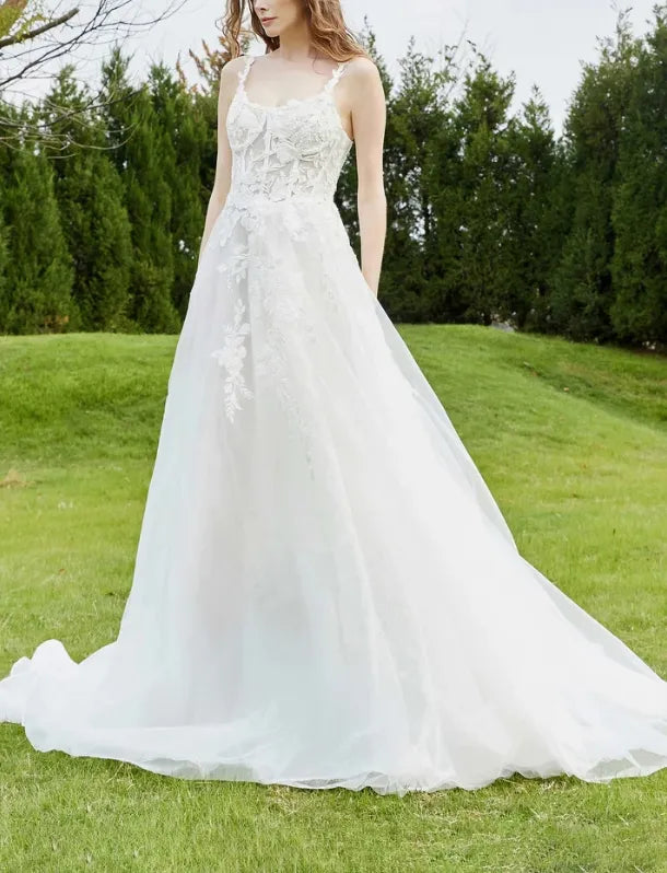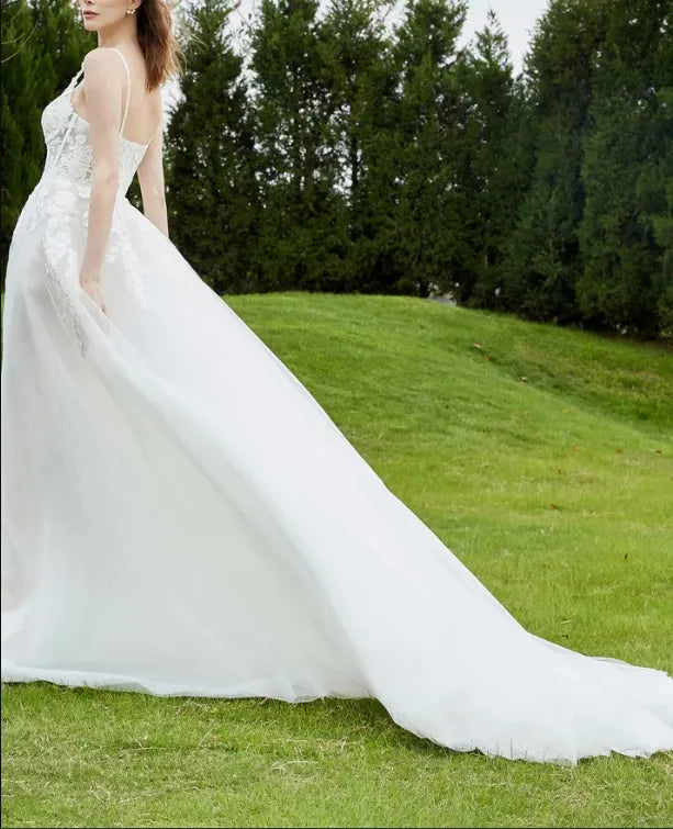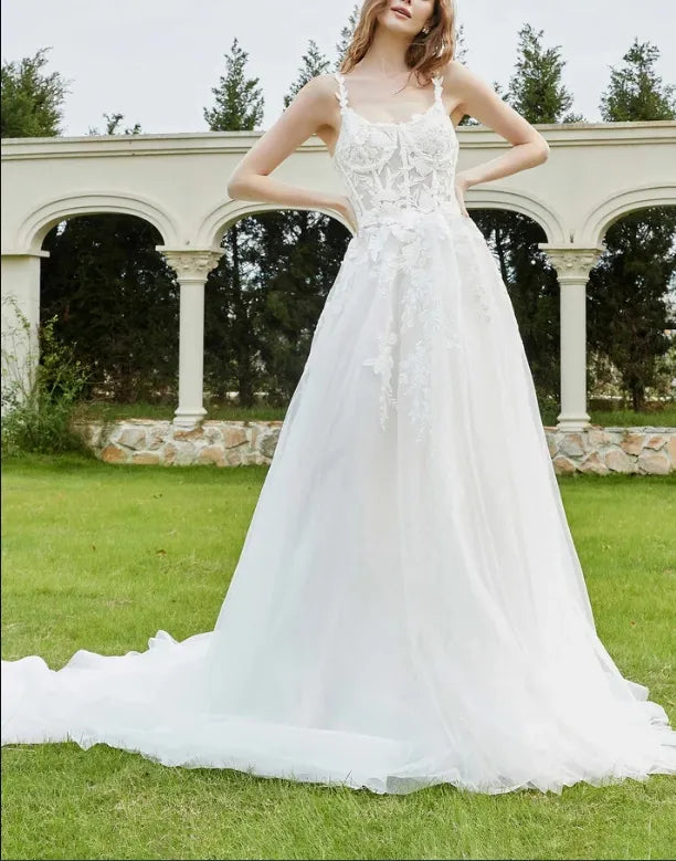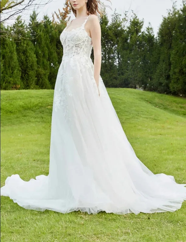 Fall November December New Pattern Wedding Dress Square Neck Applique Tulle Backless Elegant Dress