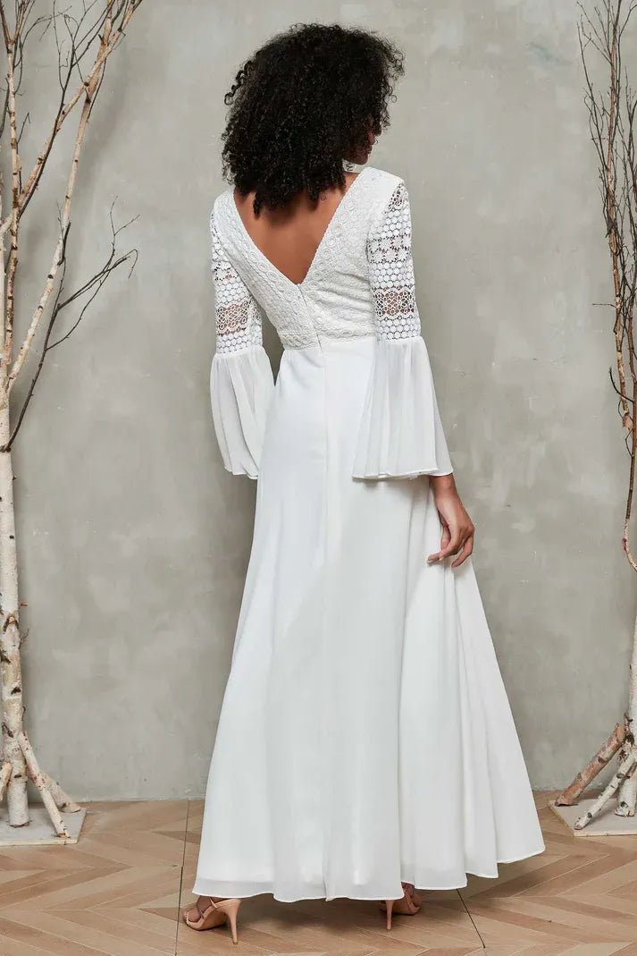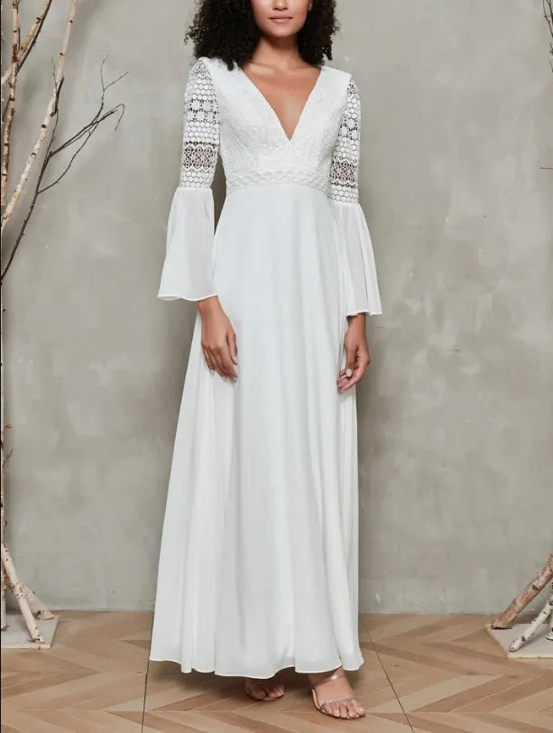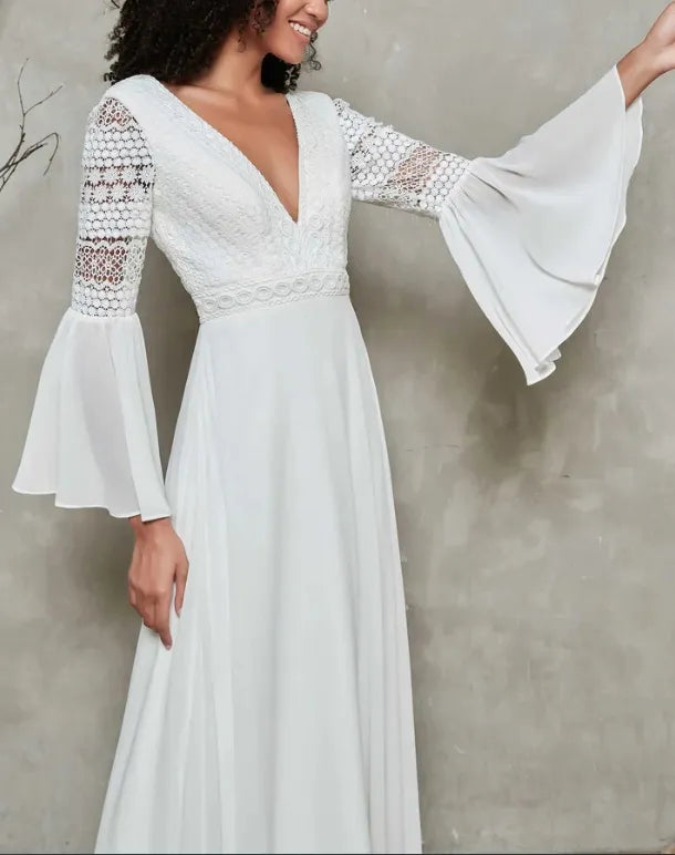Fall November December New Pattern Wedding Dress V Neck Long Sleeves Chiffon Simple Dress