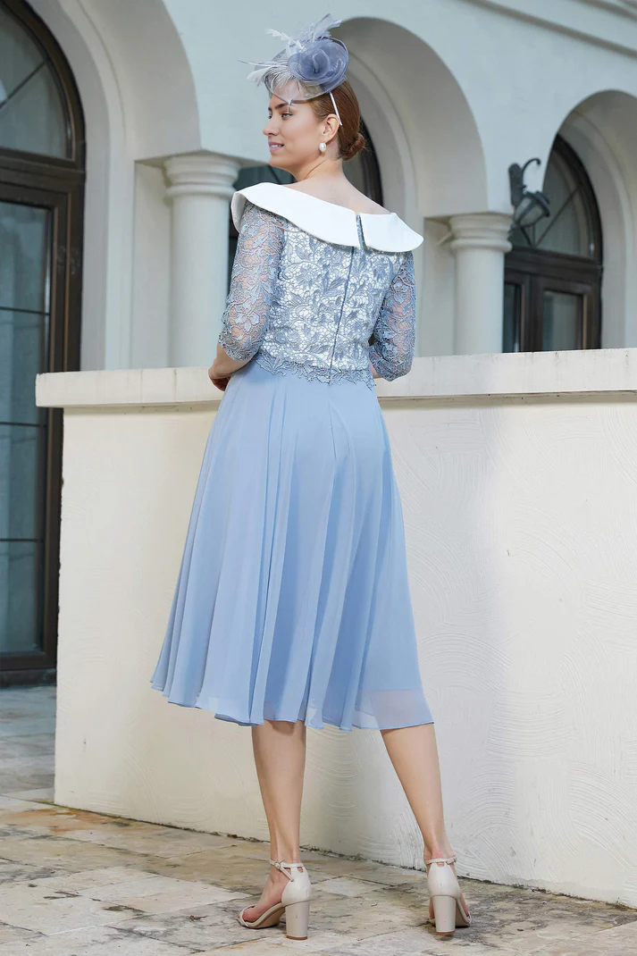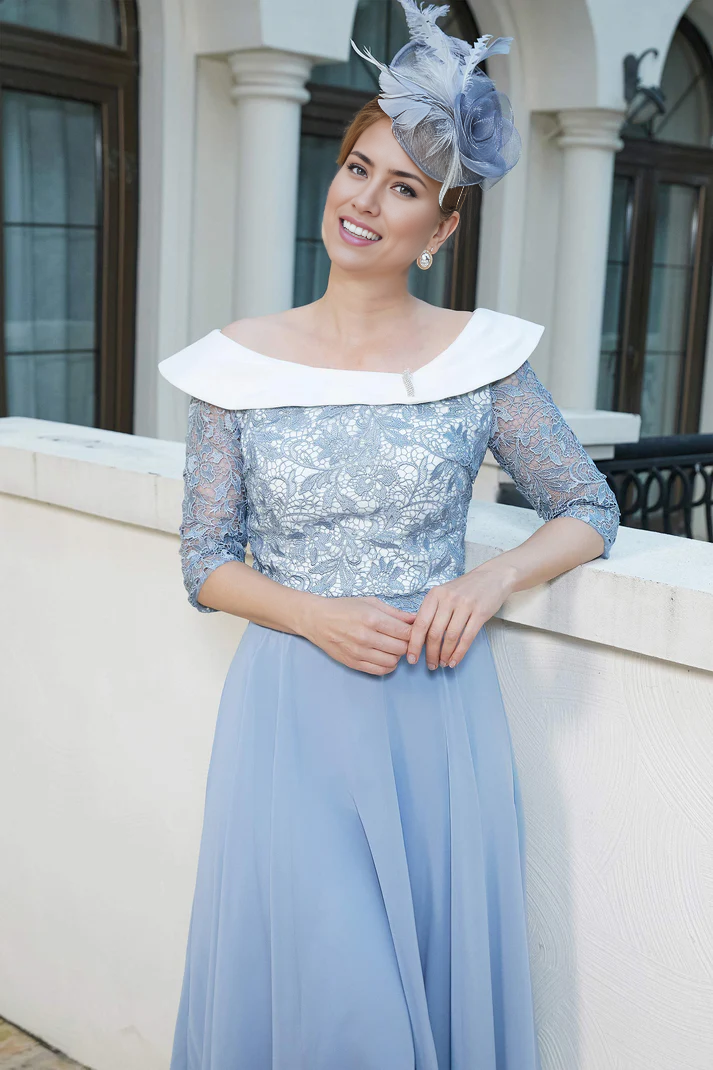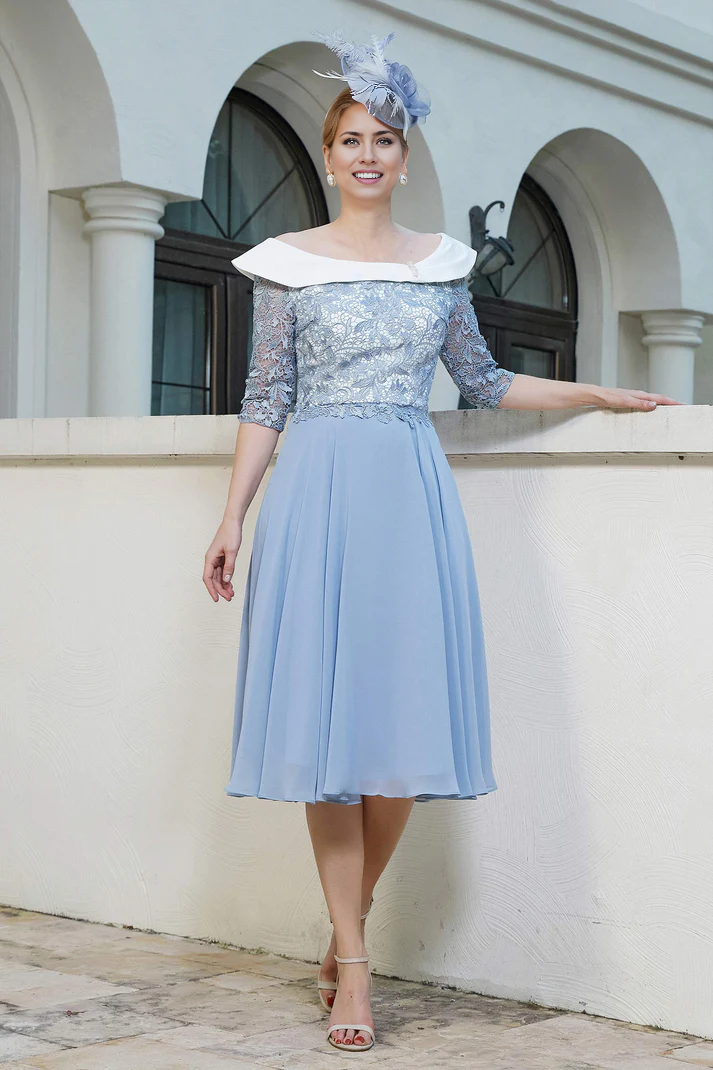 Fall November December Wedding Guest Dress A-Line Lace Top Scoop Neck Chiffon Dress Mother of the Groom/Bride Dresses