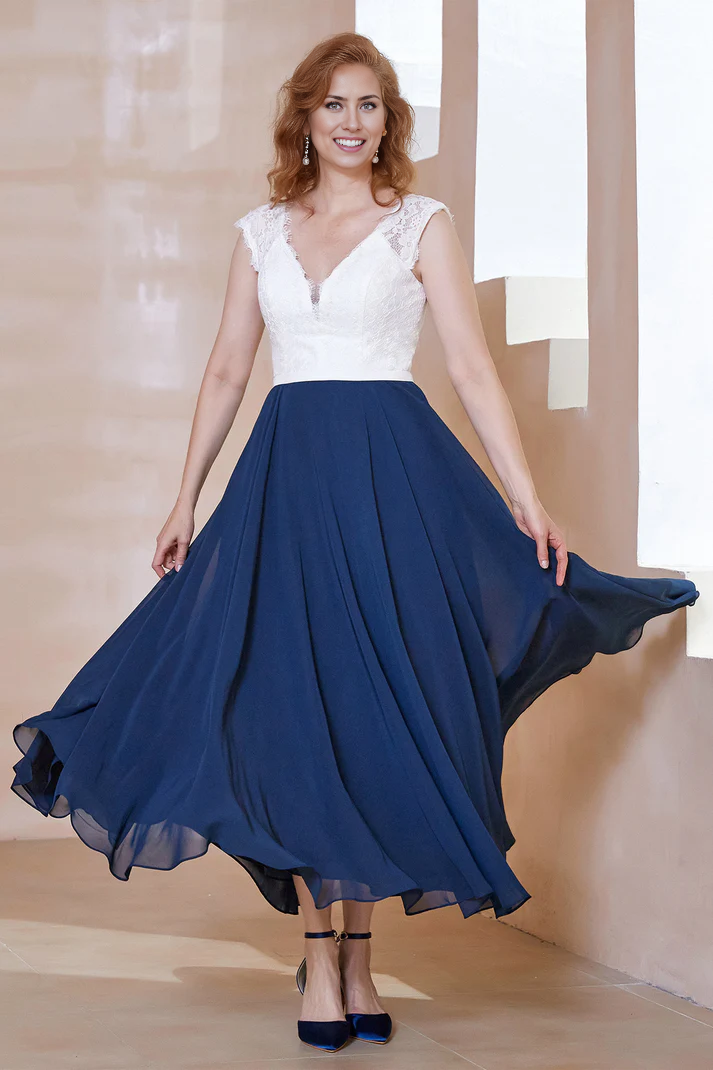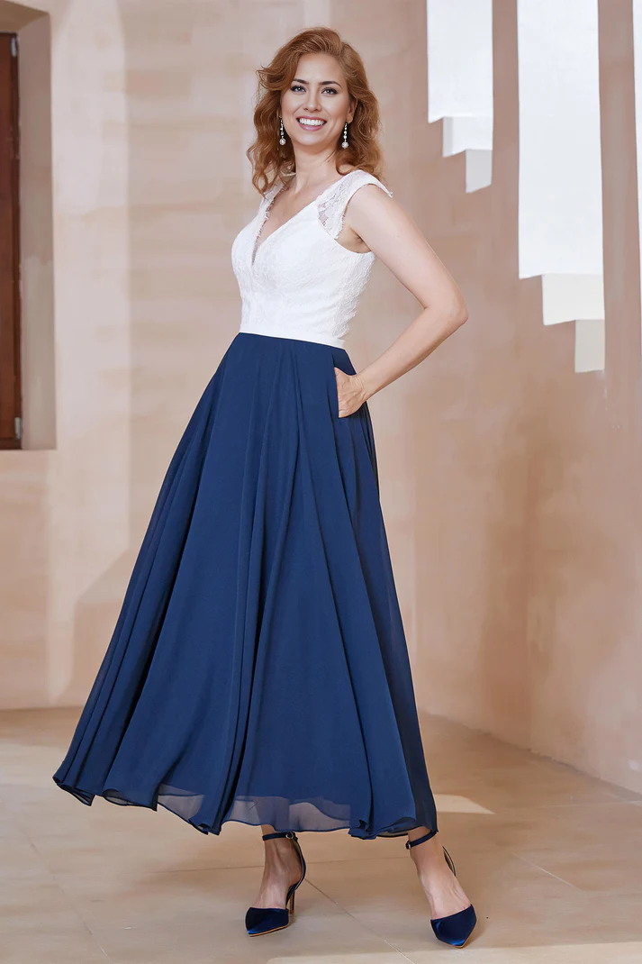 Fall November December Wedding Guest Dress Deep V Neck Lace Chiffon Dress With Pockets Mother of the Groom/Bride Dresses