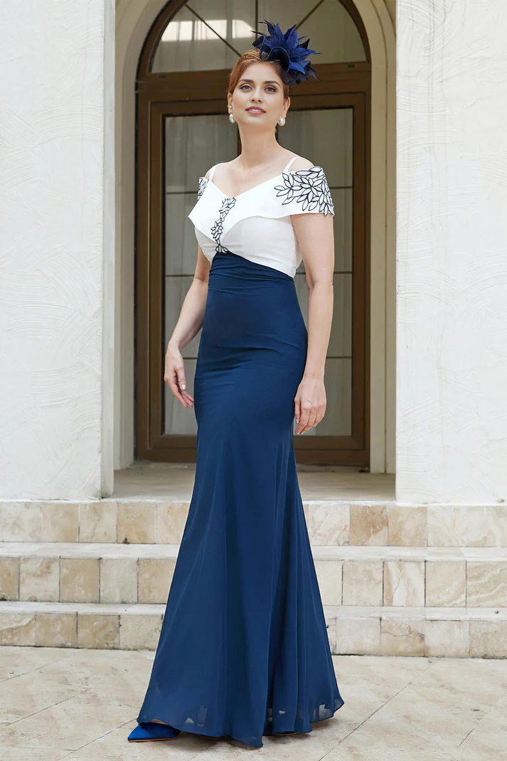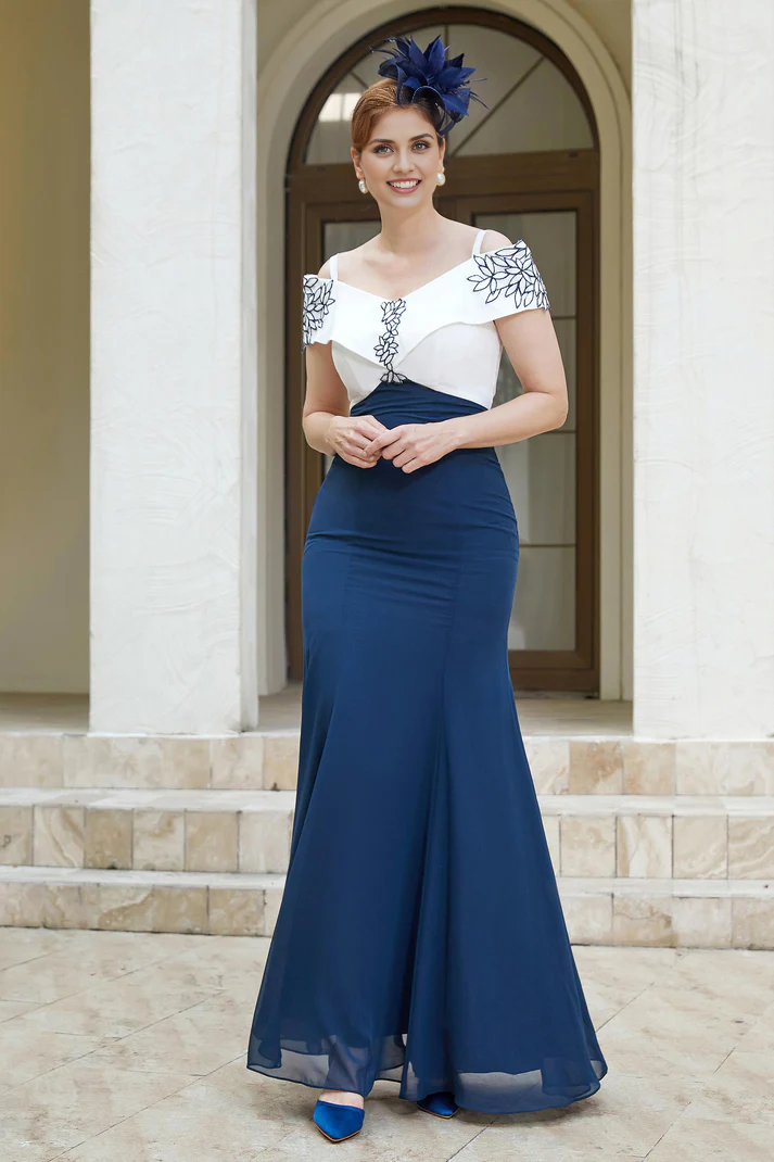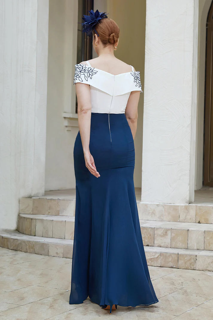 Fall November December Wedding Guest Dress Sheath Off-the-Shoulder Chiffon Long Dress Mother of the Groom / Bride Dresses