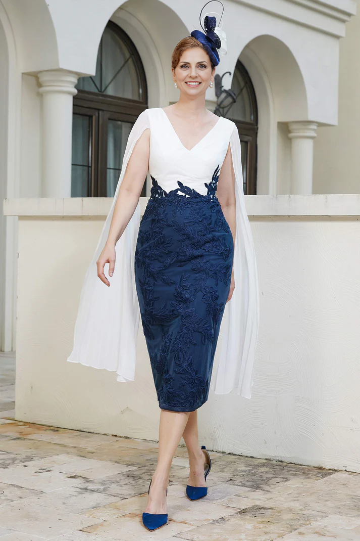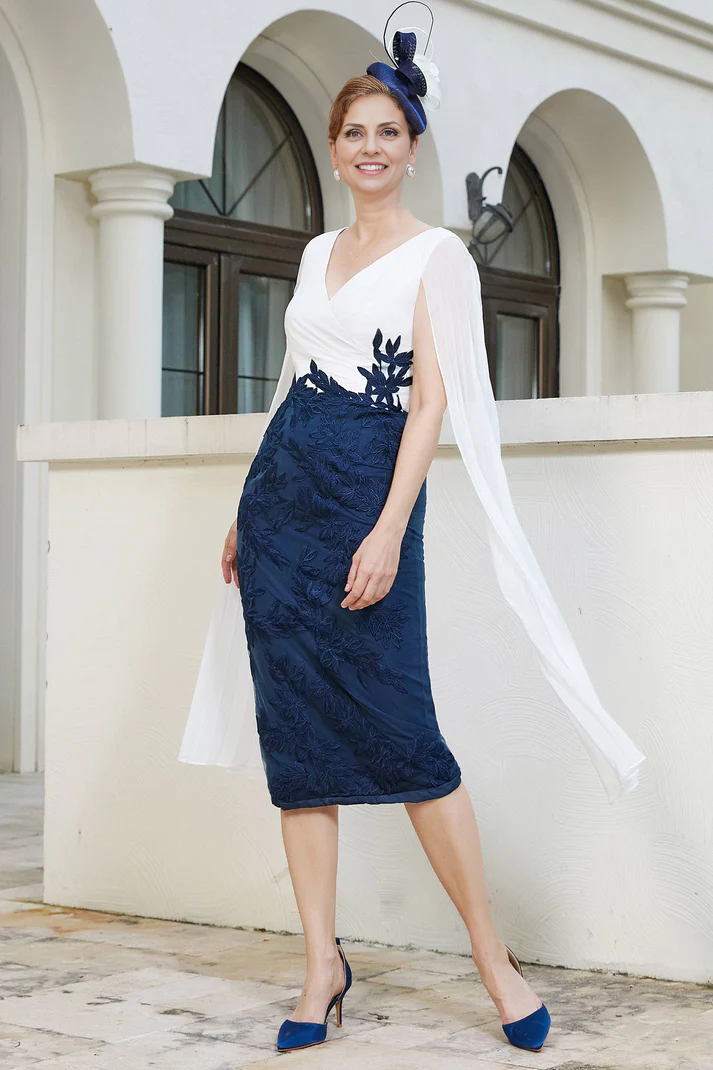 Fall November December Wedding Guest Dress Simple Sheath V Neck Flutter Sleeves Applique Dress Mother of the Groom / Bride Dresses