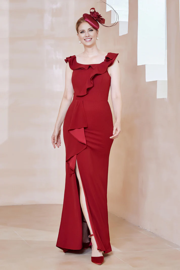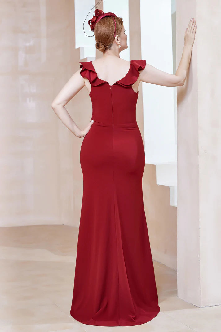 Fall November December Wedding Guest Dress Christmas Dress Square Neckline Ruffles Dress Slit Split Fork Mother of the Groom/Bride Dresses