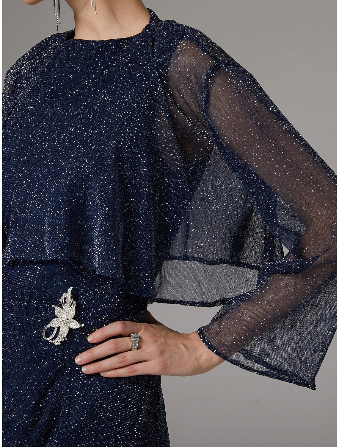 Fall November December Wedding Guest Dress Two Piece Sheath / Column Dress Suit Elegant Sparkle & Shine Jewel Neck Floor Length Chiffon Long Sleeve with Buttons Mother of the Groom / Bride Dresses