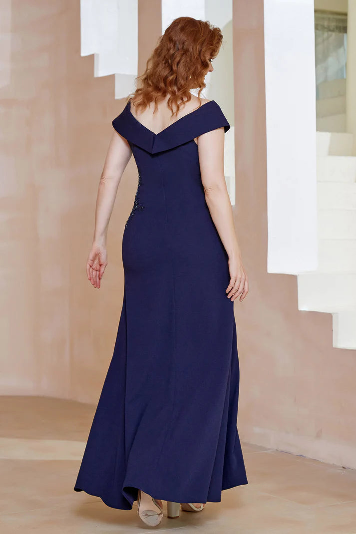 Fall November December Wedding Guest Dress V-Neck Cap Sleeves Sequins Split Fork Dress Mother of the Groom/Bride Dresses