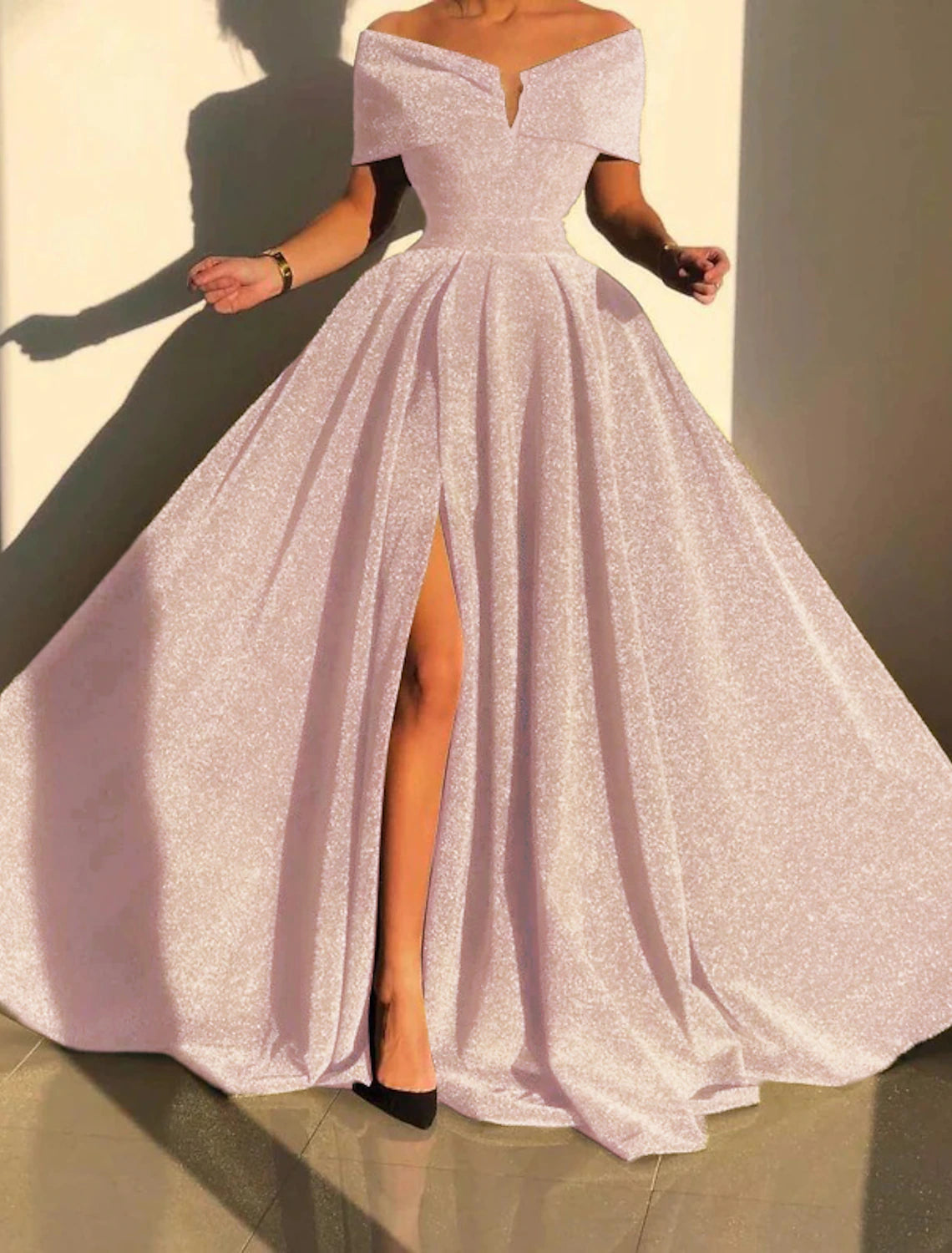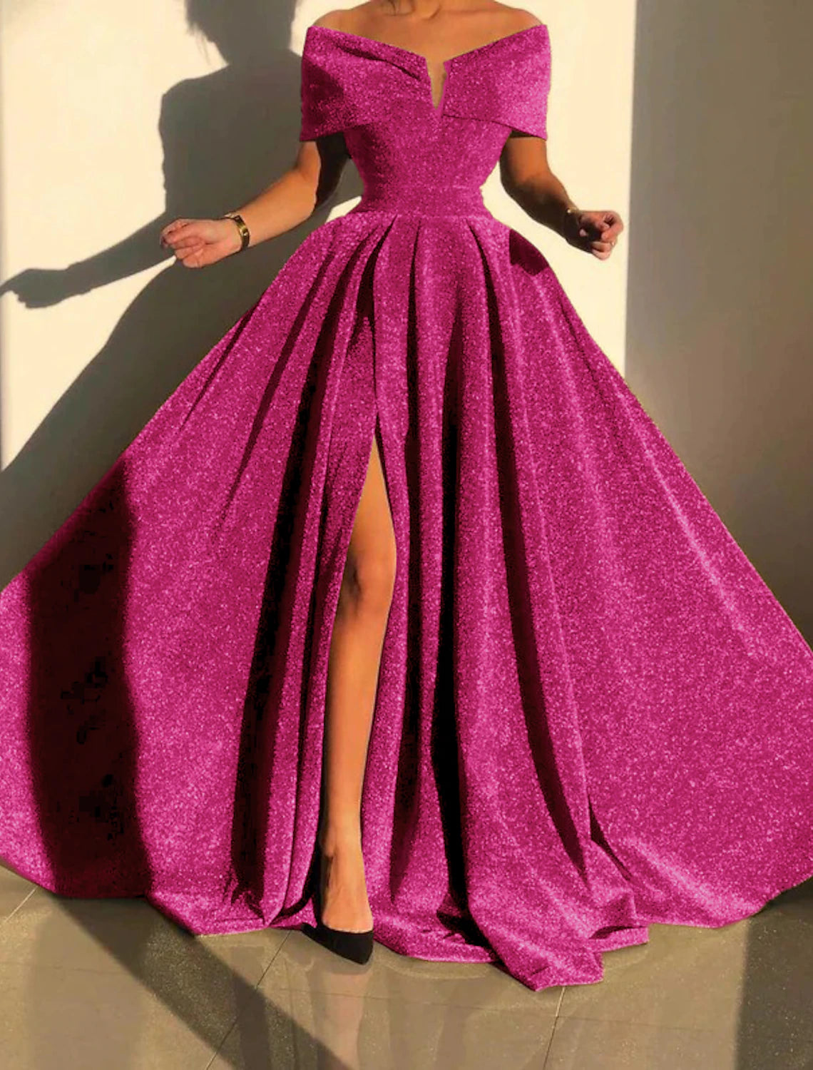 Formal Fall Court Train Sleeveless Off Shoulder Sequined with Sequin Slit Evening Dress