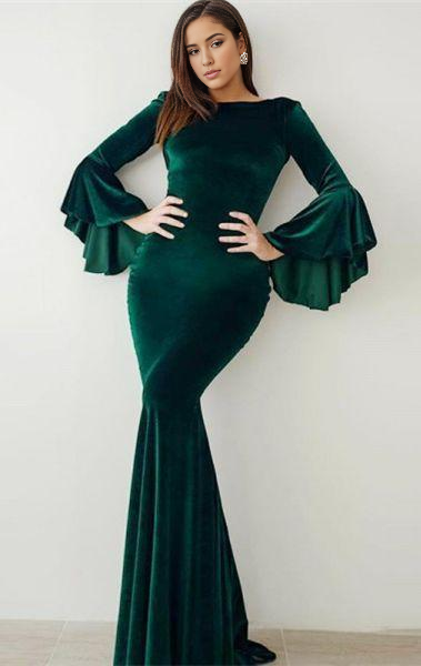 Glamorous Mermaid Cultivate oneself Velvet Prom Dresses Flare Sleeve Vlntage Long Length Elegant Evening Dresses