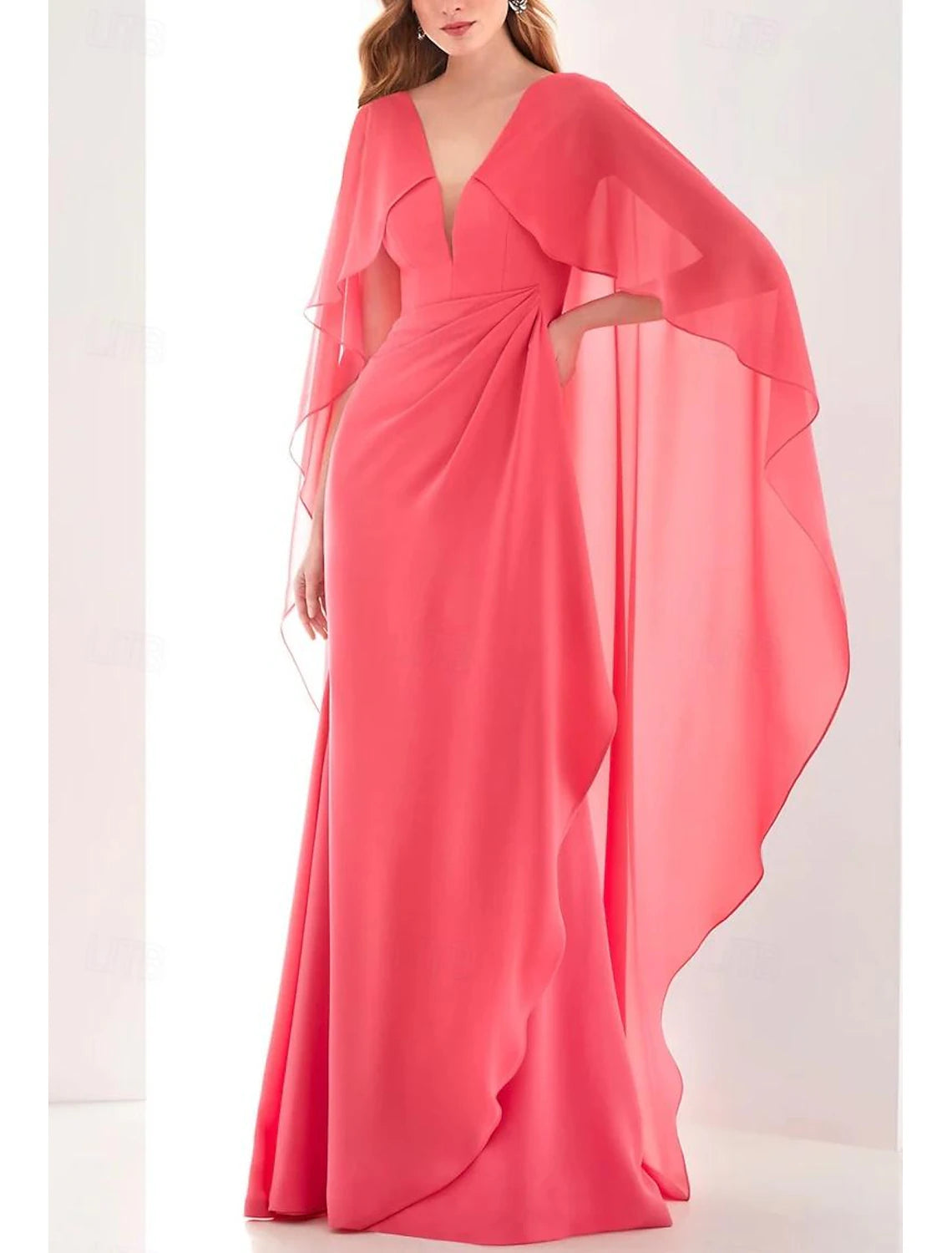 Gown Elegant Formal Fall Ankle Length Long Sleeve V Neck Chiffon with Ruched Ruffles Evening Dress