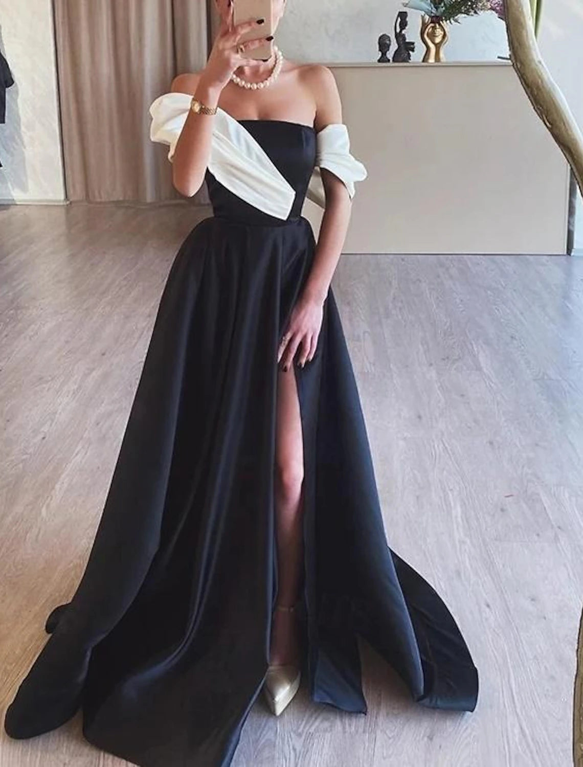 Gown Elegant Formal Prom Floor Length Sleeveless Off Shoulder Satin with Ruched Slit Evening Dress