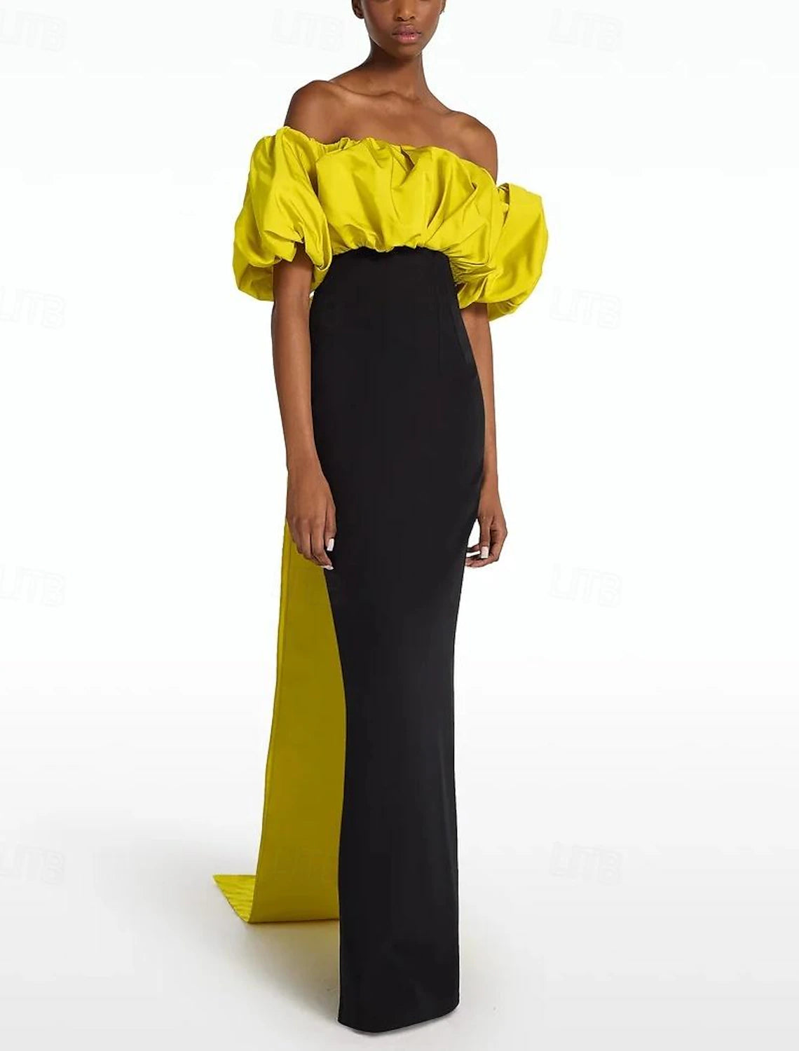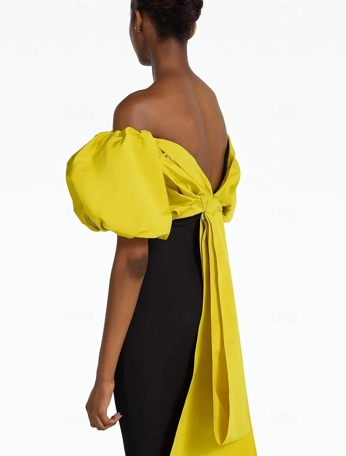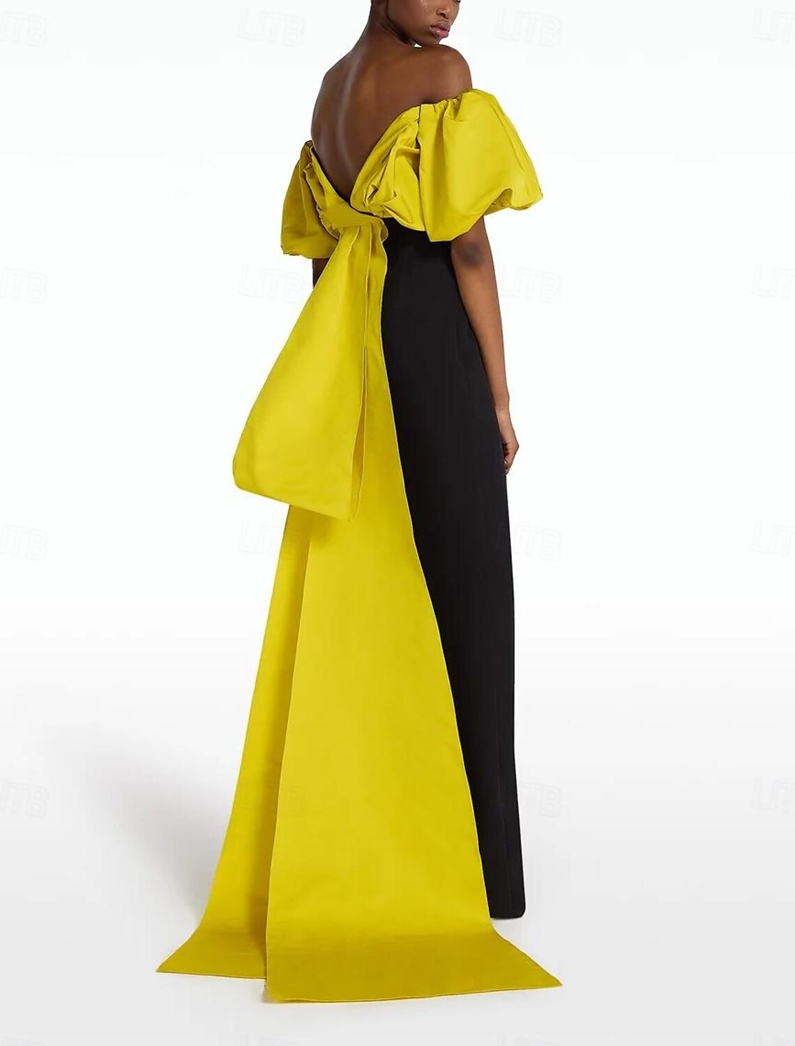 Gown Elegant Formal Train Sleeveless Jewel Neck Stretch Crepe with Bow Evening Dress