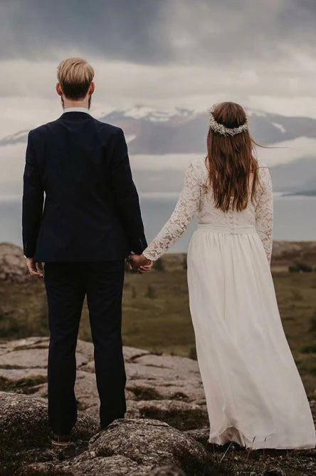 Long Sleeves Wedding Dress A-Line/Princess Appliques Floor-Length Chiffon