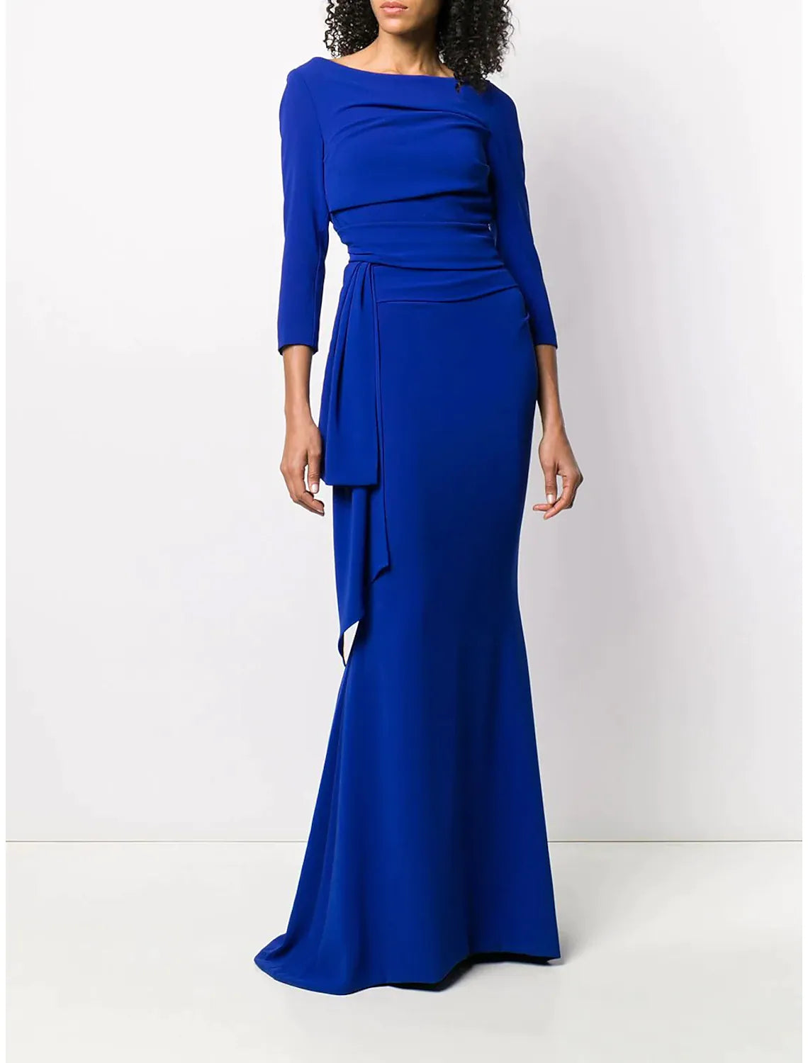 Mermaid / Trumpet Elegant Sexy Wedding Guest Formal Evening Dress Scoop Neck 3/4 Length Sleeve Sweep / Brush Train Stretch Fabric with Ruched Pure Color
