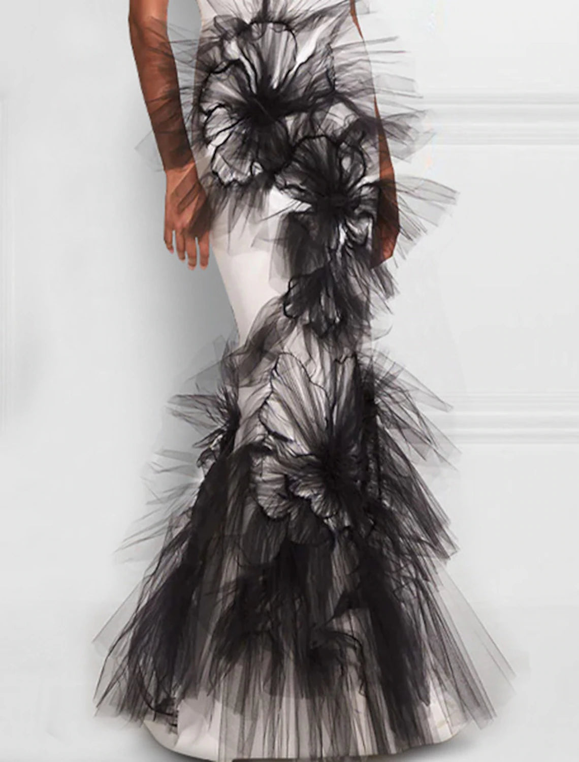 Mermaid / Trumpet Evening Gown Color Block Dress Formal Wedding Guest Floor Length Sleeveless V Neck Stretch Fabric with Appliques