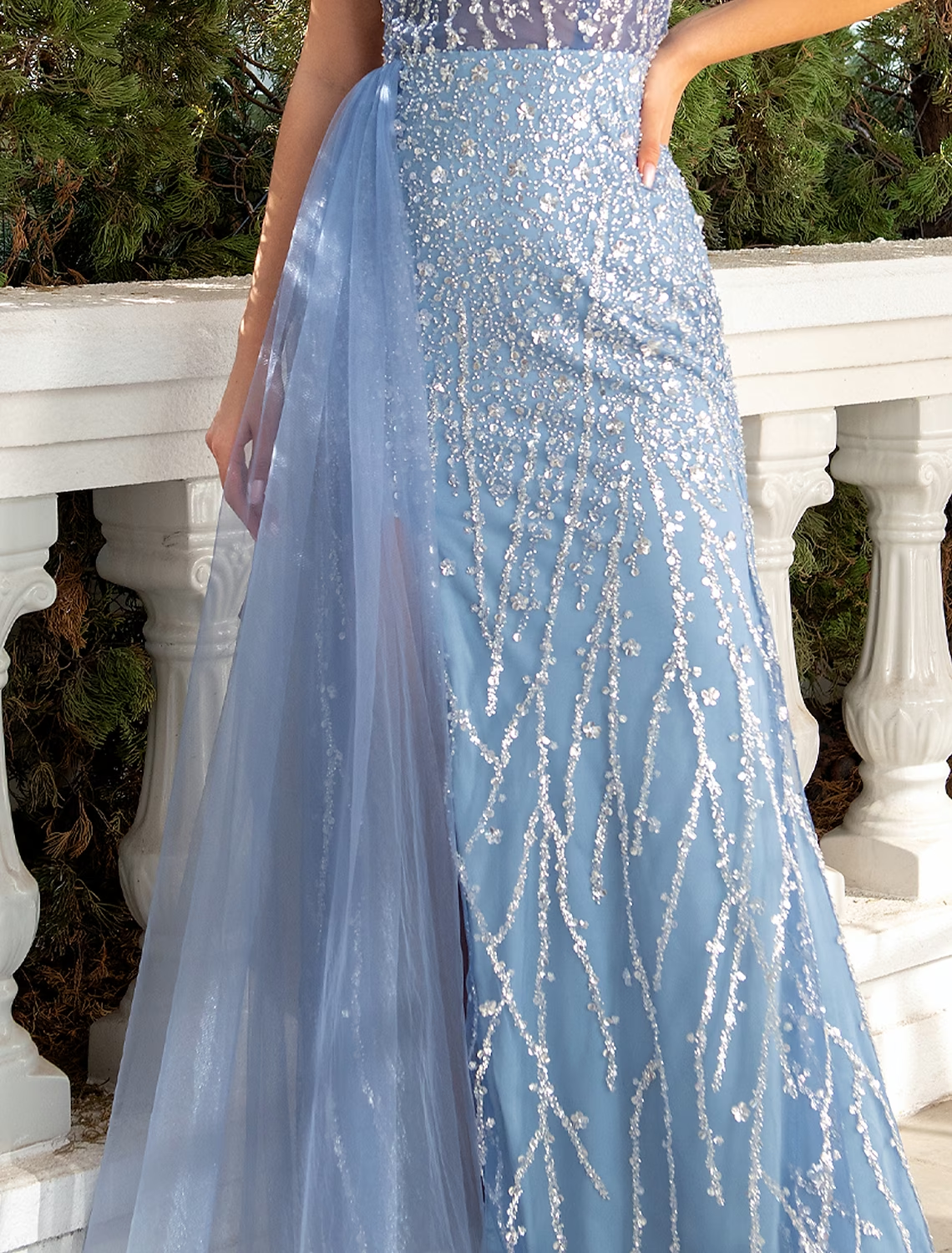 Mermaid / Trumpet Evening Gown Cut Out Dress Wedding Party Floor Length Sleeveless One Shoulder Tulle with Sequin