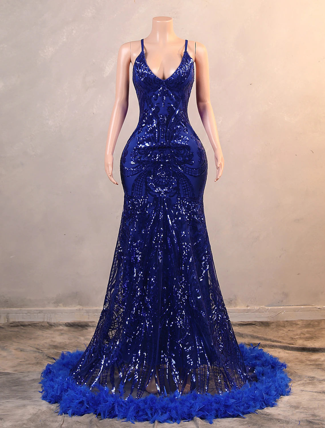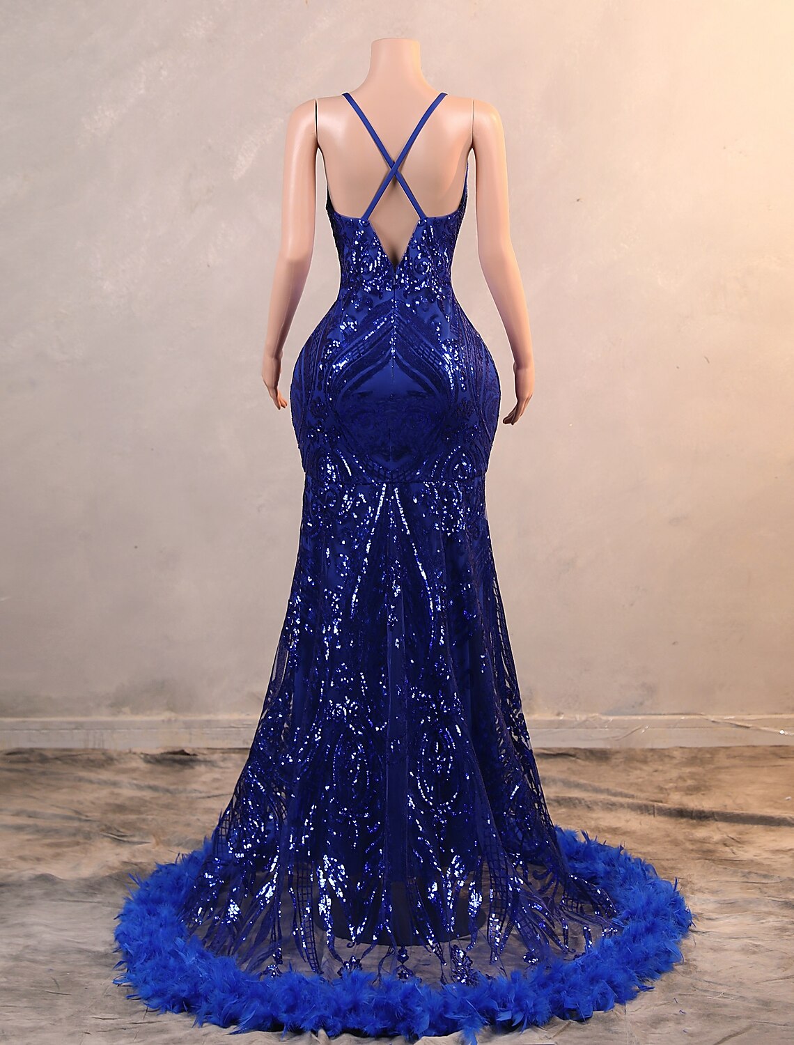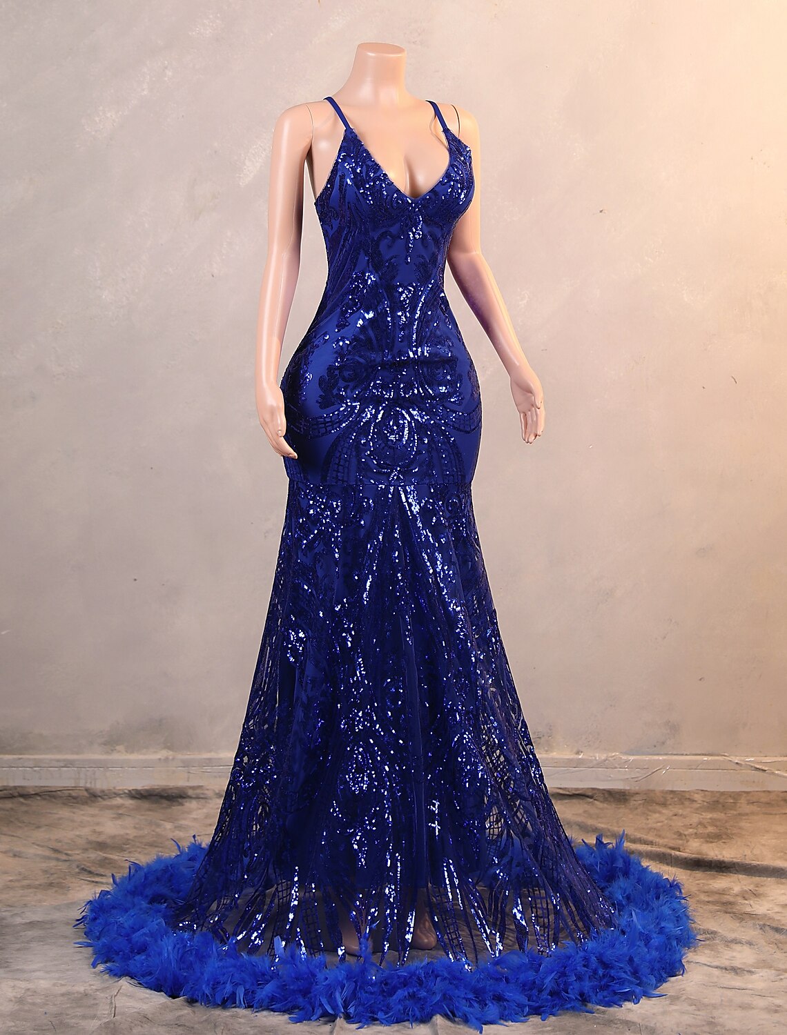 Mermaid / Trumpet Evening Gown Luxurious Dress Carnival Floor Length Sleeveless Spaghetti Strap African American Sequined with Feather Embroidery