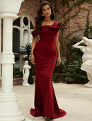 Mermaid / Trumpet Evening Gown Sexy Dress Formal Wedding Guest Sweep / Brush Train Sleeveless One Shoulder Polyester with Ruffles