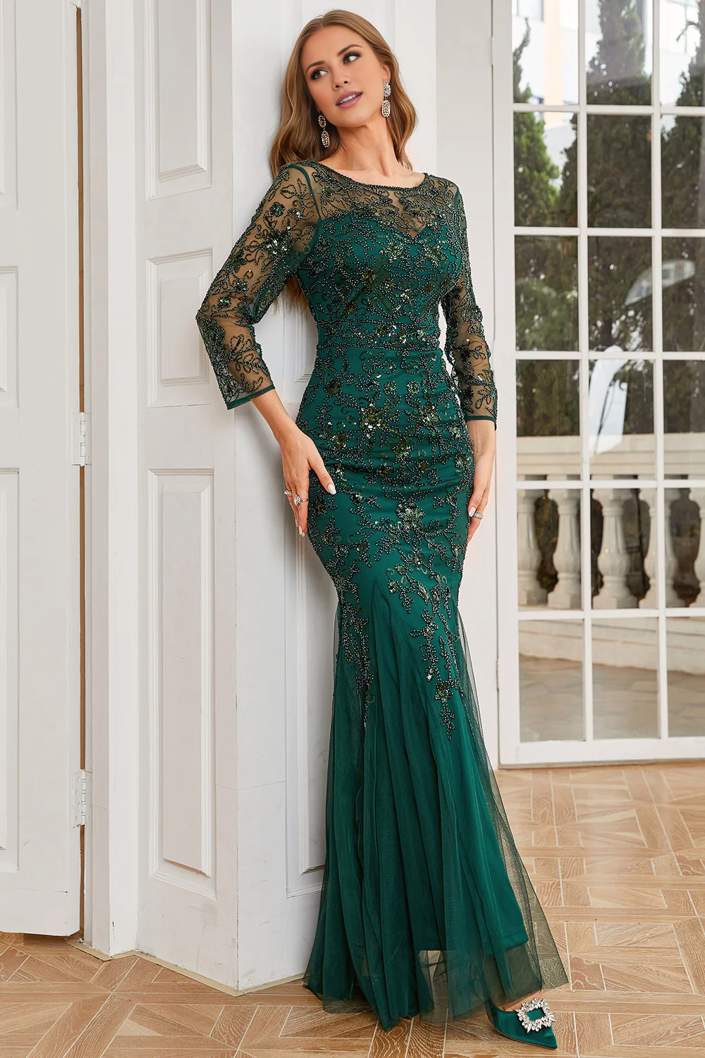 Mother of the Bride Dress Mermaid Beading with Long Sleeves