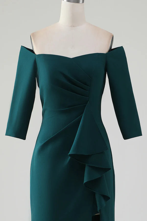 Mother Of The Bride Dress Mermaid Off The Shoulder Cascading Ruffle Split Dress