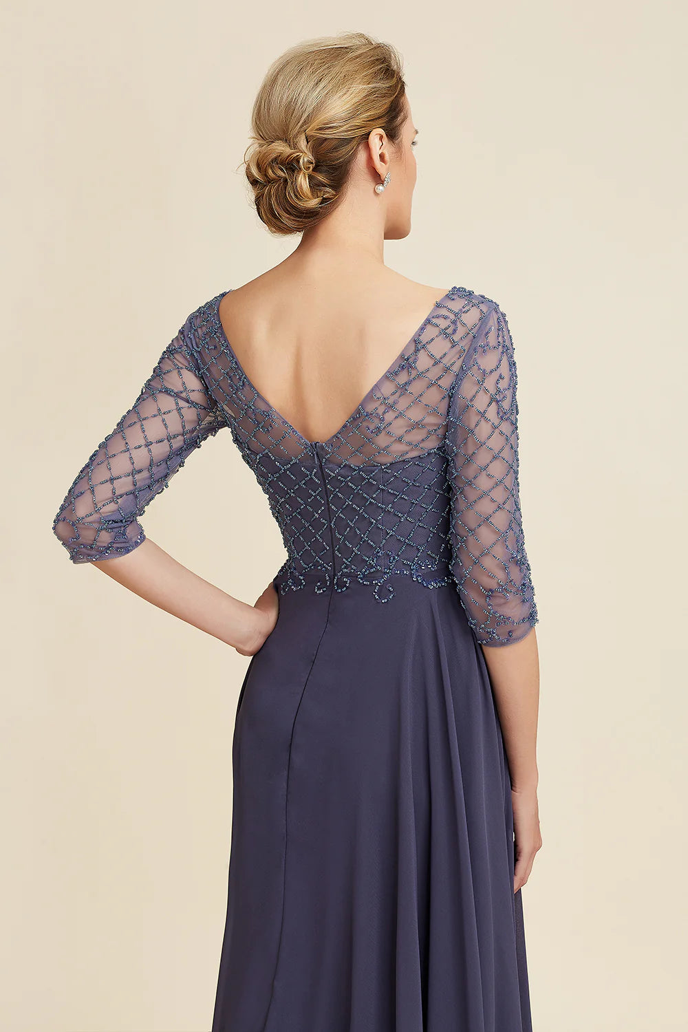 Mother of the Bride Dress Sparkly Grey Blue Beaded