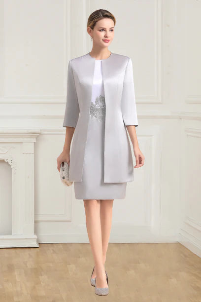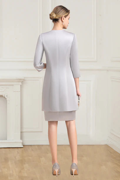 Mother of the Bride Dress Two Piece 3/4 Sleeves Short Sheath with Jacket