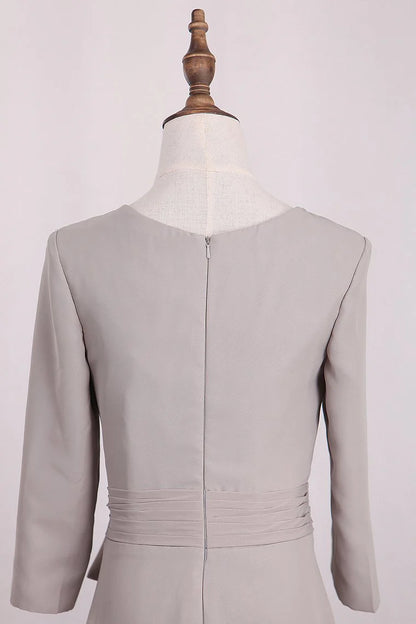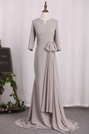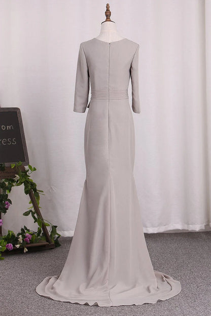 Mother Of The Bride Dresses Mermaid 3/4 Length Sleeves Chiffon Scoop With Sash