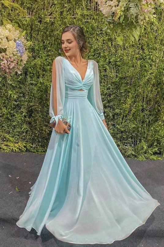 Mother of the Bride Dresses Sheath Chiffon Ruched V-neck Long Sleeves Sweep