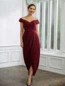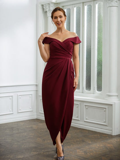 Mother of the Bride Dresses Sheath Column Stretch Ruched Off-the-Shoulder Sleeveless Floor Length