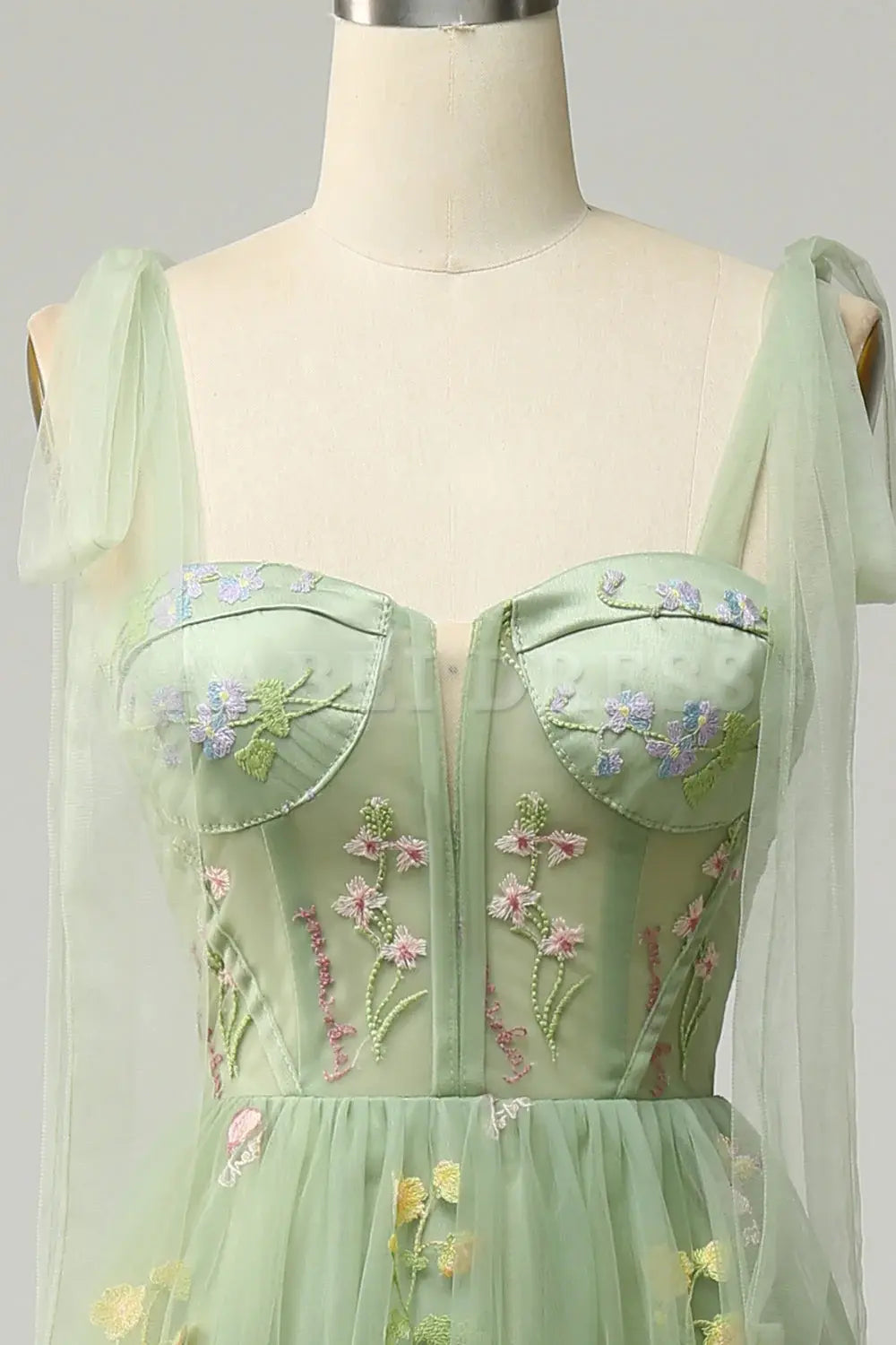 Prom Dress A Line Spaghetti Straps Corset Lace up Long Embroidery Luxurious Formal Wear Dresses