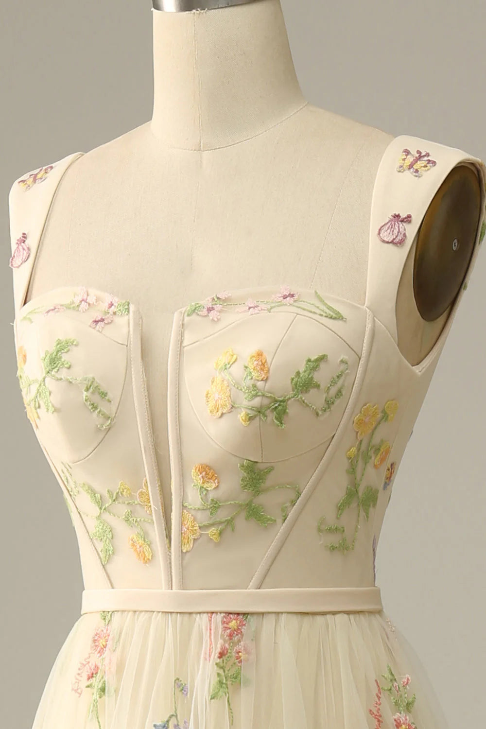 Prom Dress A-Line Square Neck Lace Embroidered Unique Luxury Formal Wear Dresses