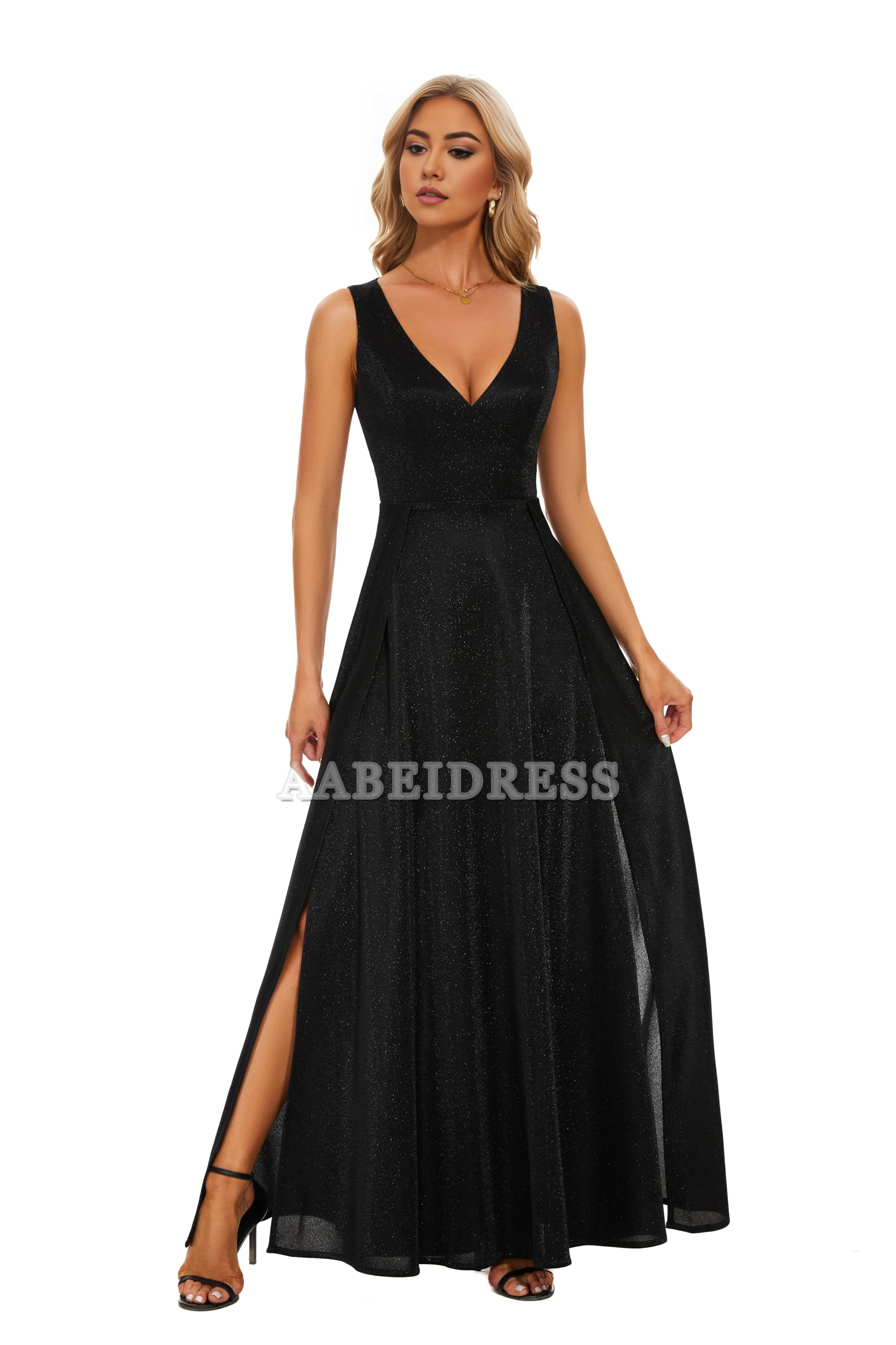 Prom Dress V Neck Elegant Sparkle Evening Long Party High Slit Wedding Guest Dresses Formal Wear Dresses