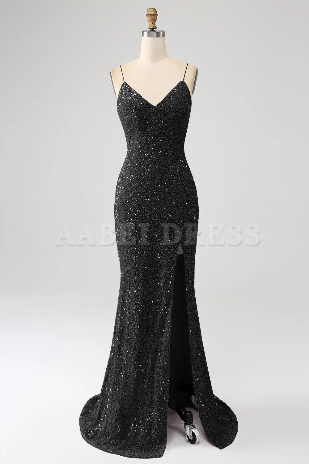 Prom Dress V-Neck Mermaid Cultivate oneself Spaghetti Straps Backless Sequin Side Fork Long Gorgeous Formal Wear Dresses