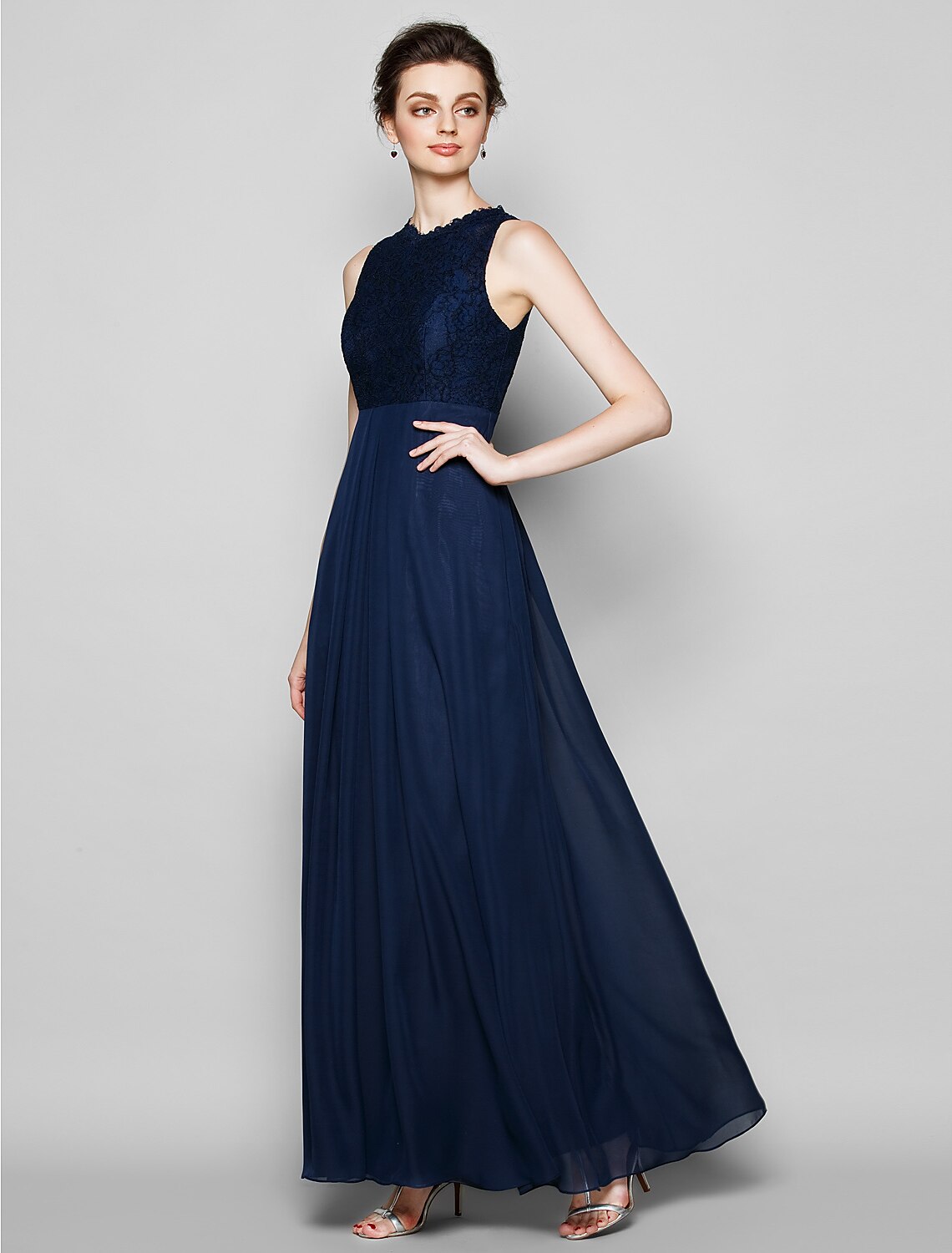 Sheath / Column Bridesmaid Dress Jewel Neck Sleeveless Elegant Floor Length Chiffon / Lace with Lace