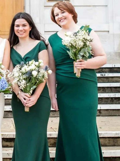 Sheath/Column Chiffon Ruched V-neck Sleeveless Floor-Length Bridesmaid Dresses