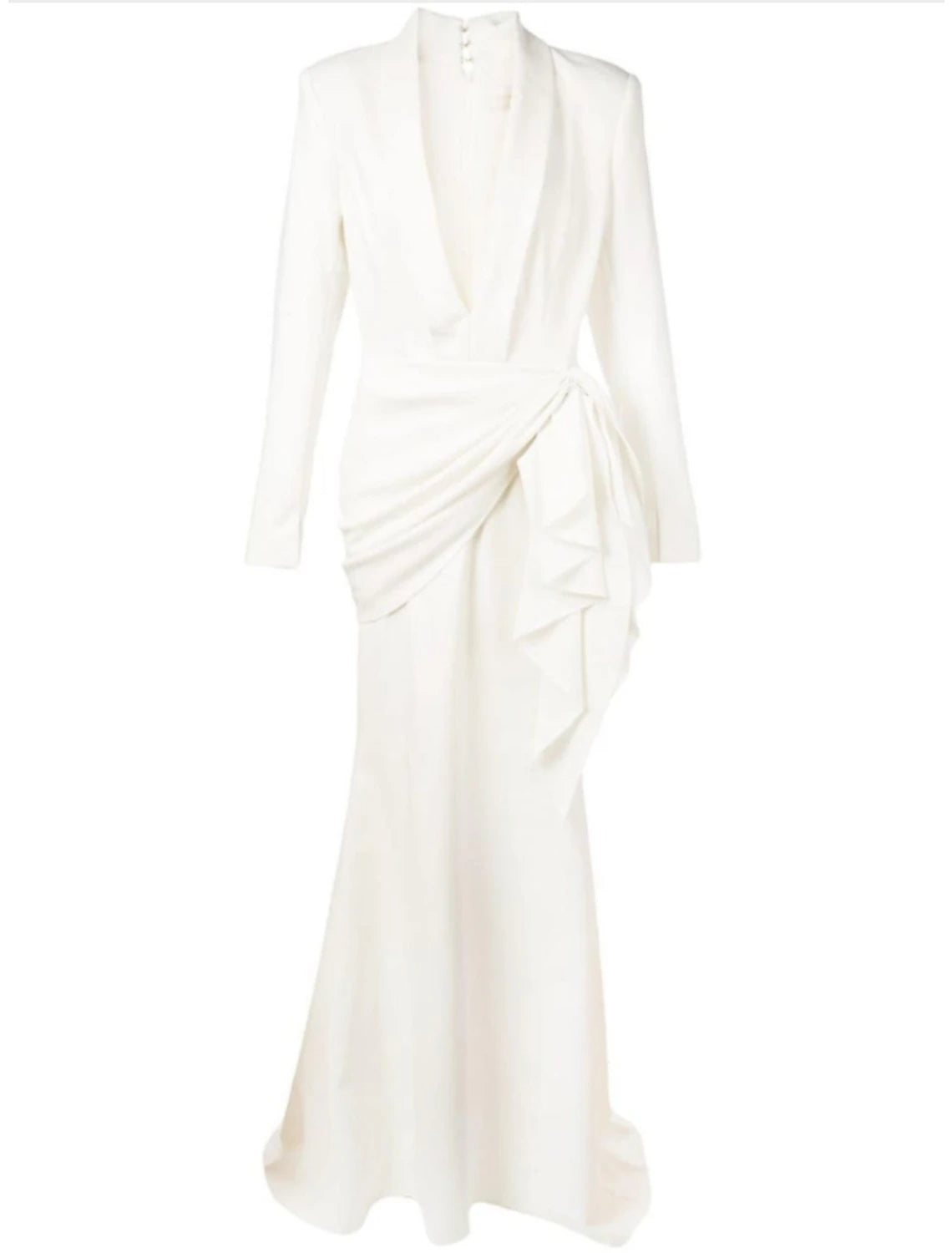 Sheath / Column Evening Gown Minimalist Dress Wedding Guest Engagement Sweep / Brush Train Long Sleeve V Neck Spandex with Pleats Draping