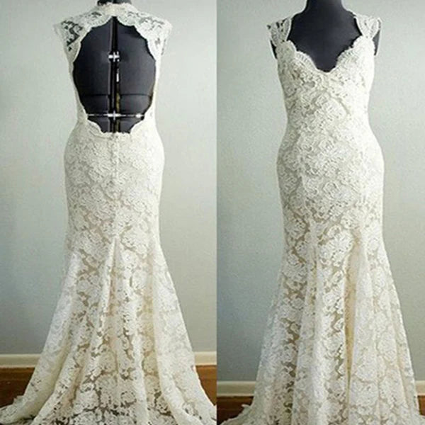 Sheath/Column Sleeveless Lace V-neck Court Train Wedding Dresses