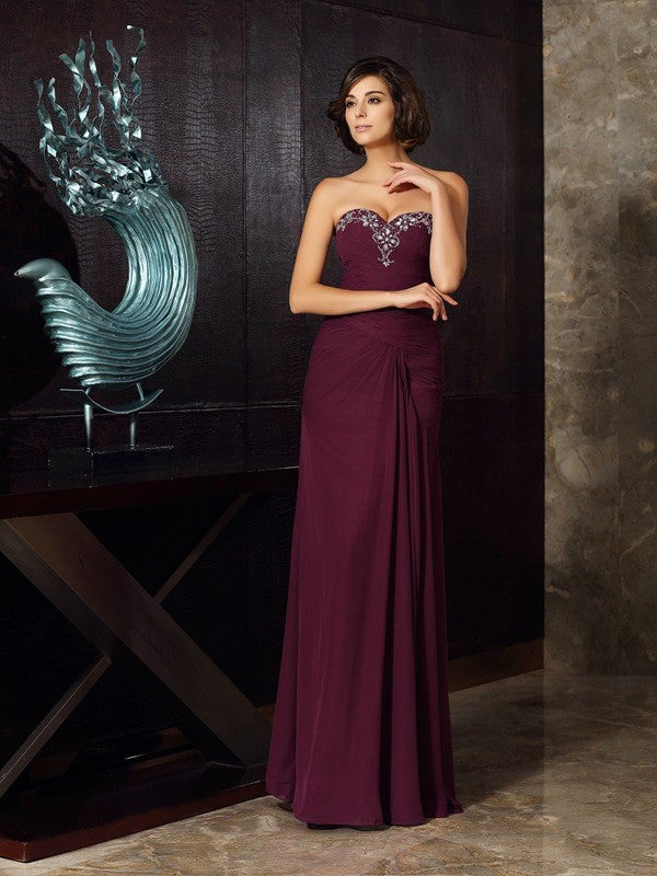 Sheath/Column Sweetheart Beading Sleeveless Long Chiffon Mother of the Bride Dresses