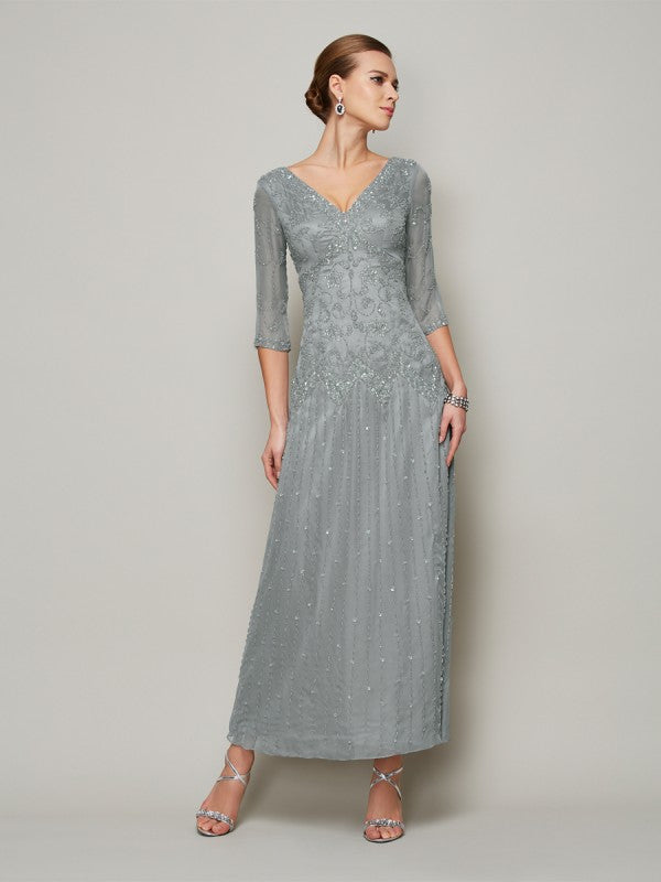 Sheath/Column V-neck 1/2 Sleeves Beading Long 30D Chiffon Mother of the Bride Dresses