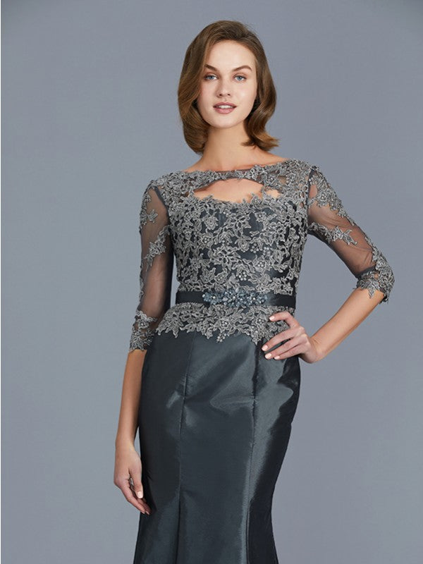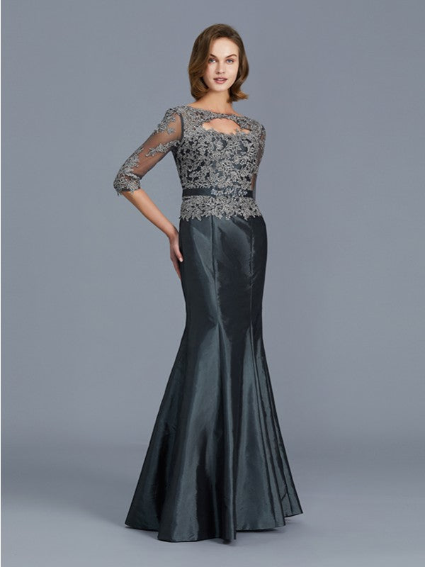 Trumpet/Mermaid Scoop 3/4 Sleeves Applique Floor-Length Taffeta Mother of the Bride Dresses