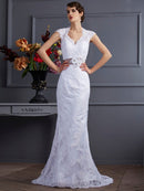 Trumpet/Mermaid Sleeveless Applique Long Satin Wedding Dresses